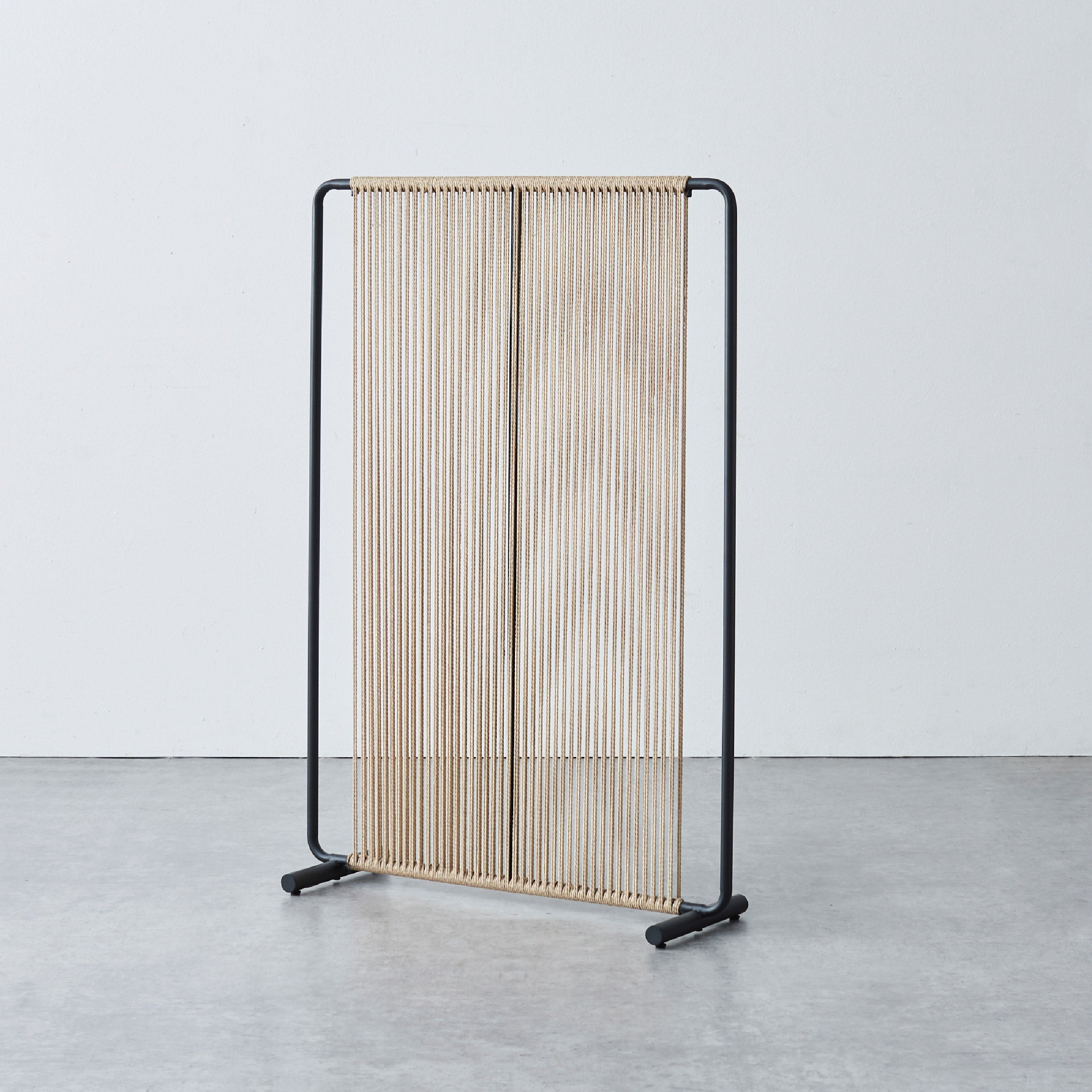 商品情報 スチールフレームにペーパーコードを編み込んだ、軽やかで上質なデザインです。 視界を完全には遮らず、ほどよい抜け感があるため、空間を仕切りながらも圧迫感がありません。 オフィスやショップ、リビングなど、さまざまな空間に馴染みやすく、複数台横に並べての使用にも適しています。