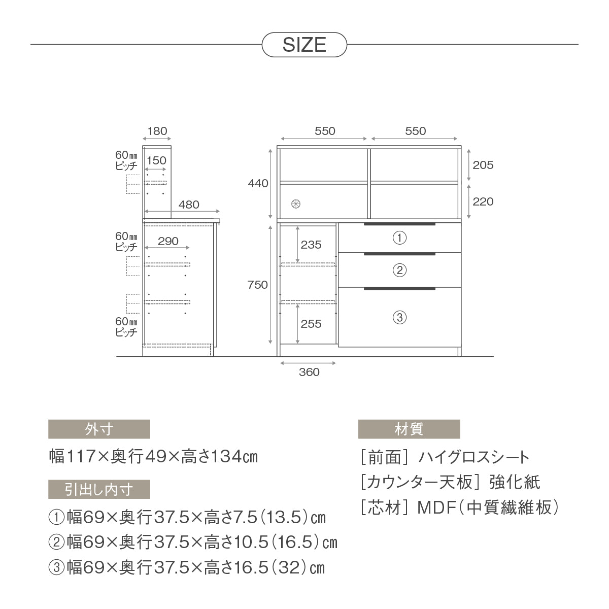 カルム 幅120cm ミドルカウンター Default Title 商品コード 474946