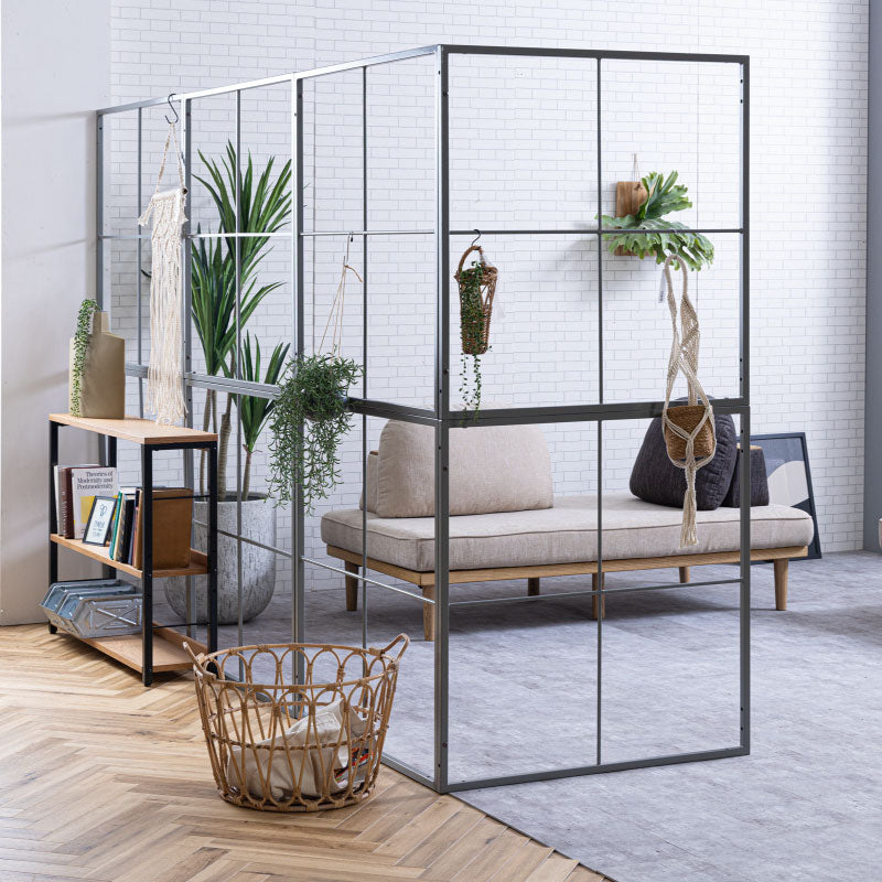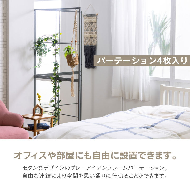 商品情報 モダンなデザインのグレーアイアンフレームパーテーション。自由な連結で、オフィスやホームの空間を思い通りに仕切ります。 グレーのアイアンが洗練された雰囲気を醸し出し、シンプルながらも存在感があります。 さらに、小物掛けにも利用可能で、機能性も抜群。自分だけのスタイリッシュな空間を演出できます。