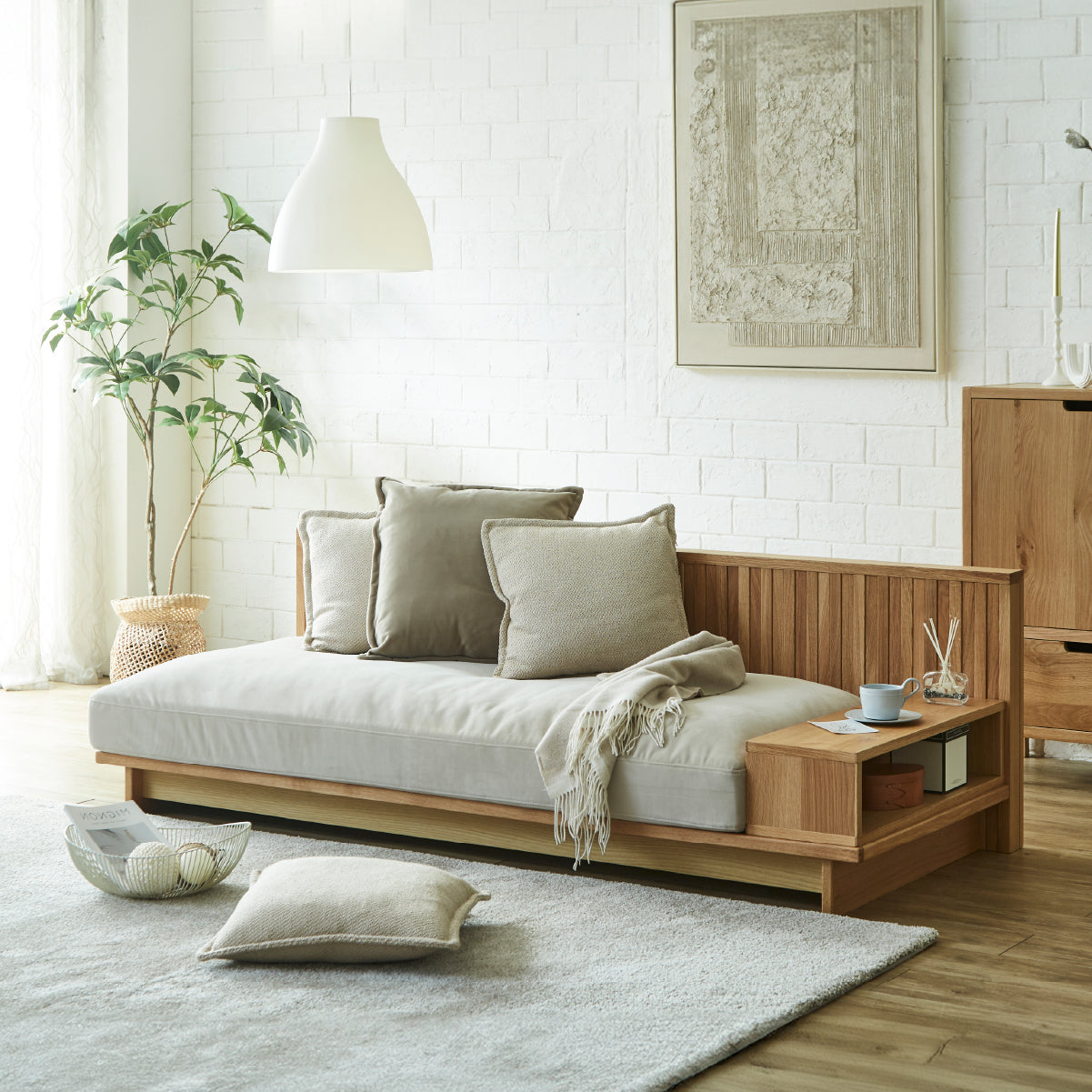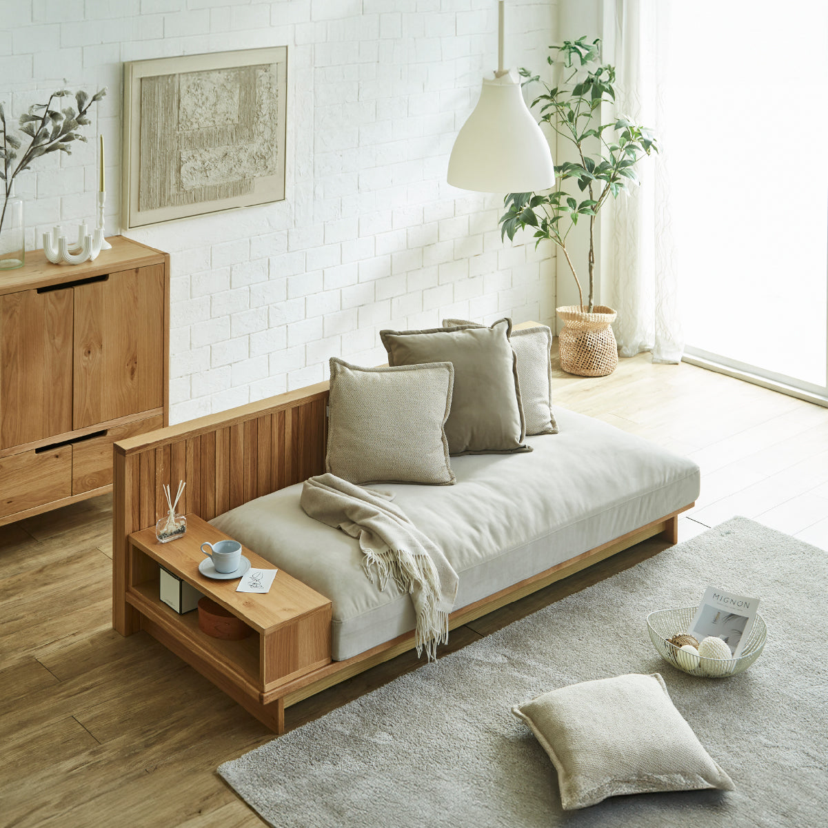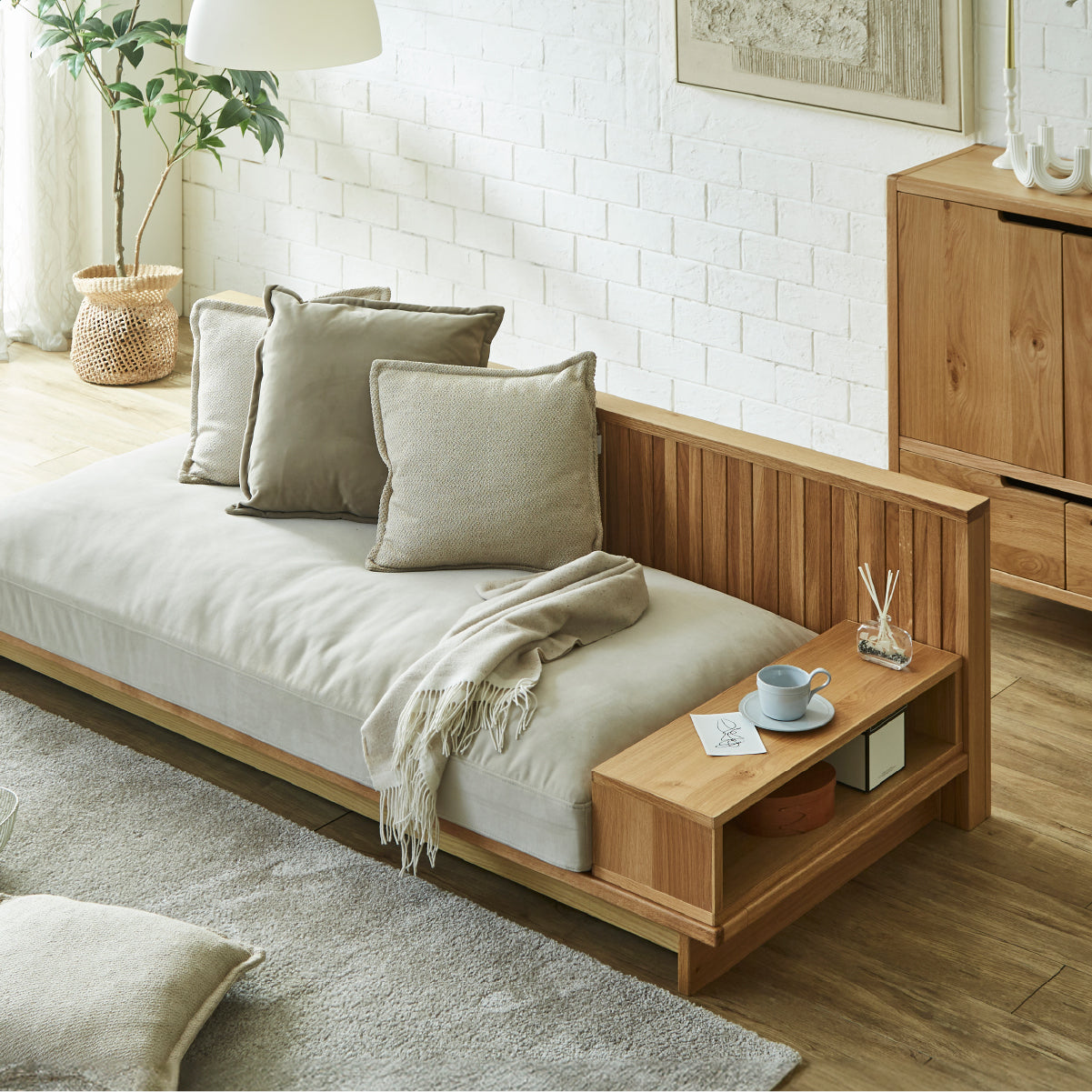 座面を広くとり、デイベッドのように使用可能。座面高は33cmと低めに設定し、安定感のある座り心地を実現。