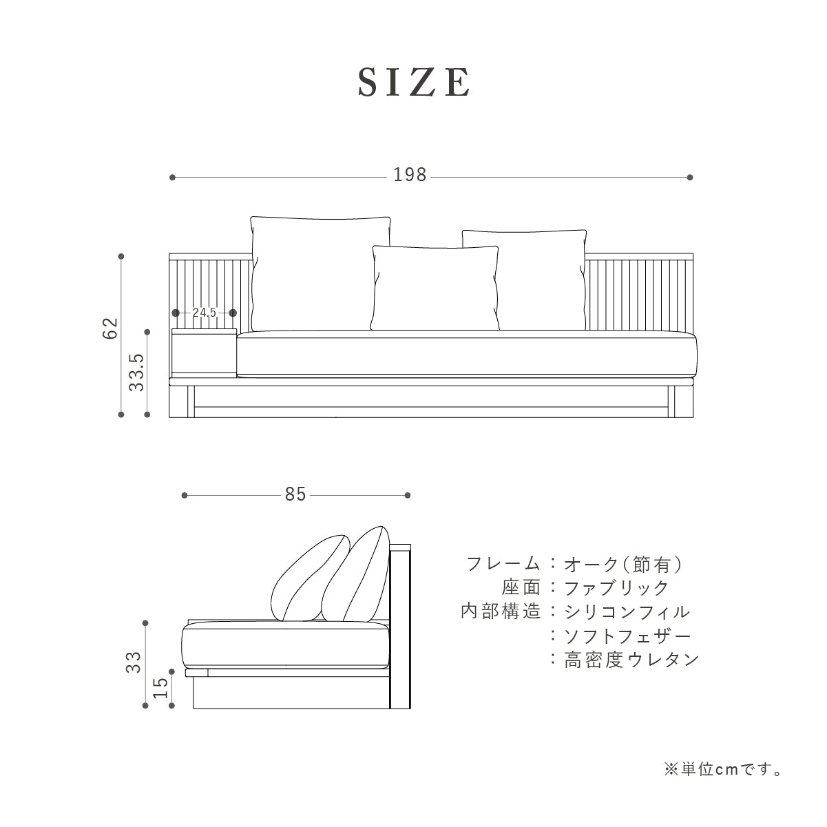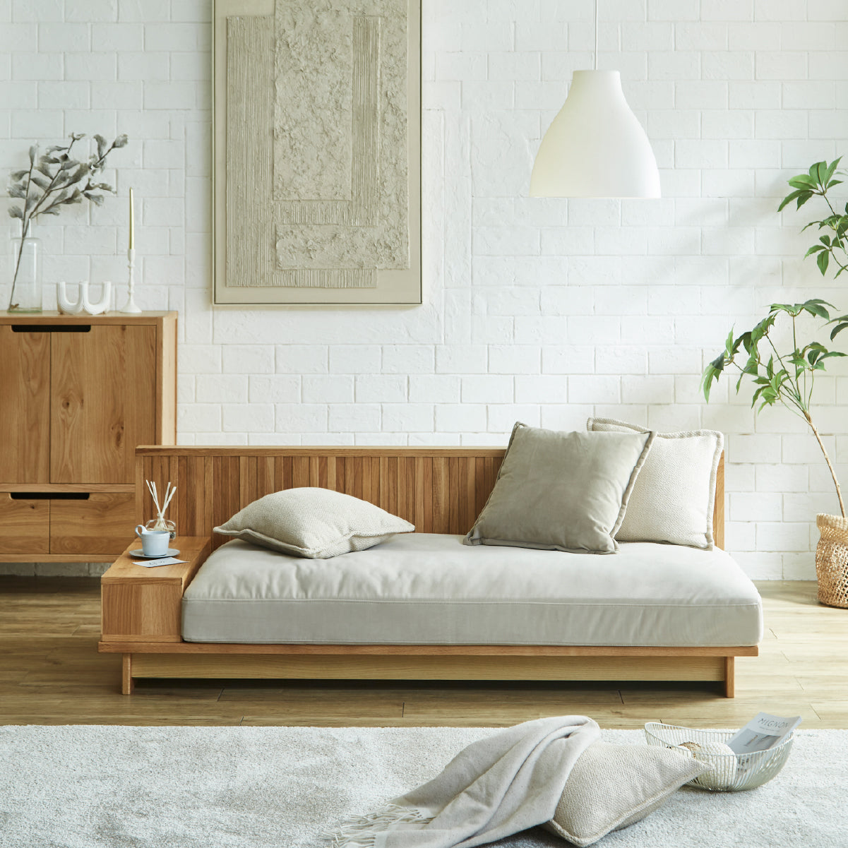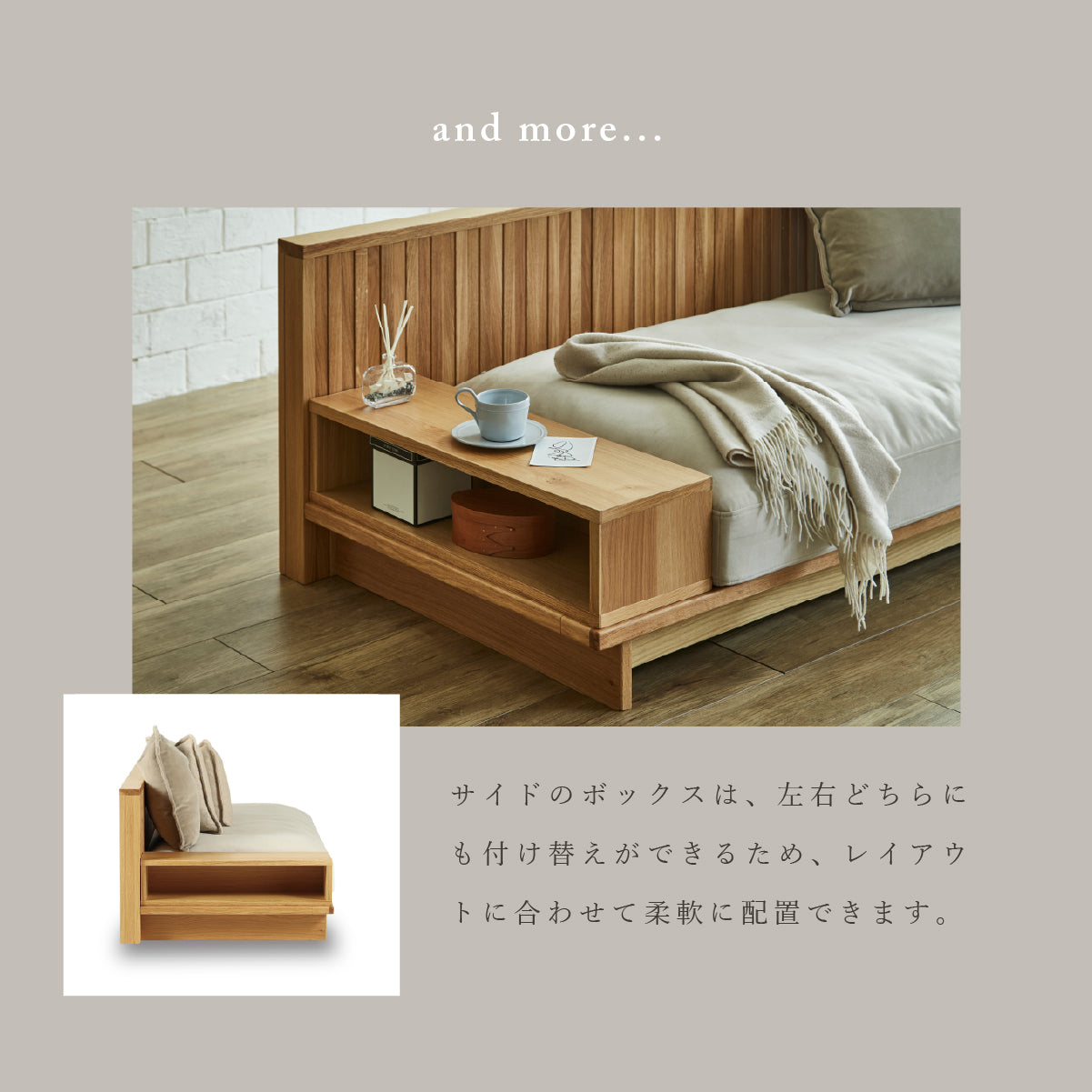 座面を広くとり、デイベッドのように使用可能。座面高は33cmと低めに設定し、安定感のある座り心地を実現。