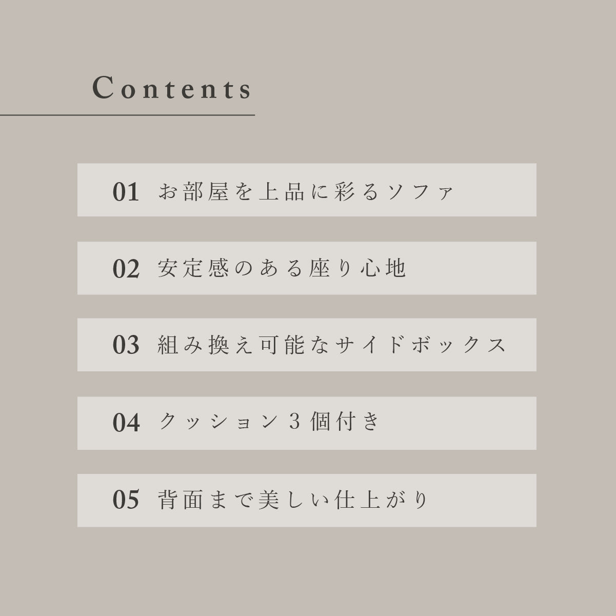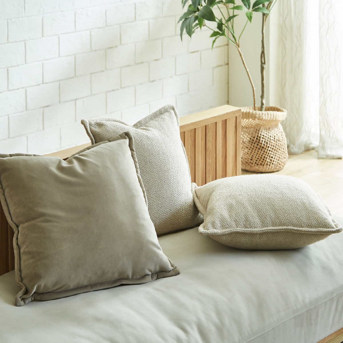 あると嬉しいクッション付き。(大1個/小2個)背に置いたり、枕にしたりソファ時間がもっと快適に。