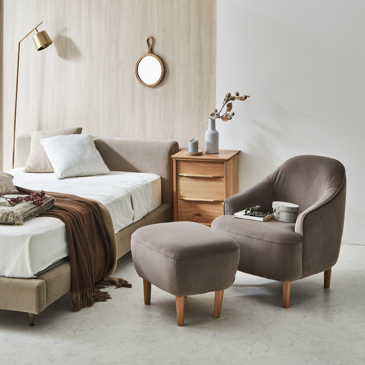 商品情報 小ぶりなオットマンは1Pパメラに合わせて足置きとして使用することで、より快適に寛ぐことをサポートします。 デスクやドレッサー前においてスツールとしてご使用いただくこともオススメです。 また、張地にはリネンが織り込まれた生地を採用し、優雅な光沢感と肌になじむ素材感を 感じていただけます。