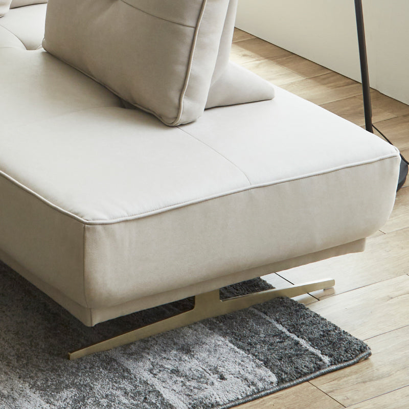 ソファの中央についている脚は、人が座った時に床に接地する構造で、 あくまで荷重がかかった時の補強用のものでございますので、浮いている状態が正常になります。