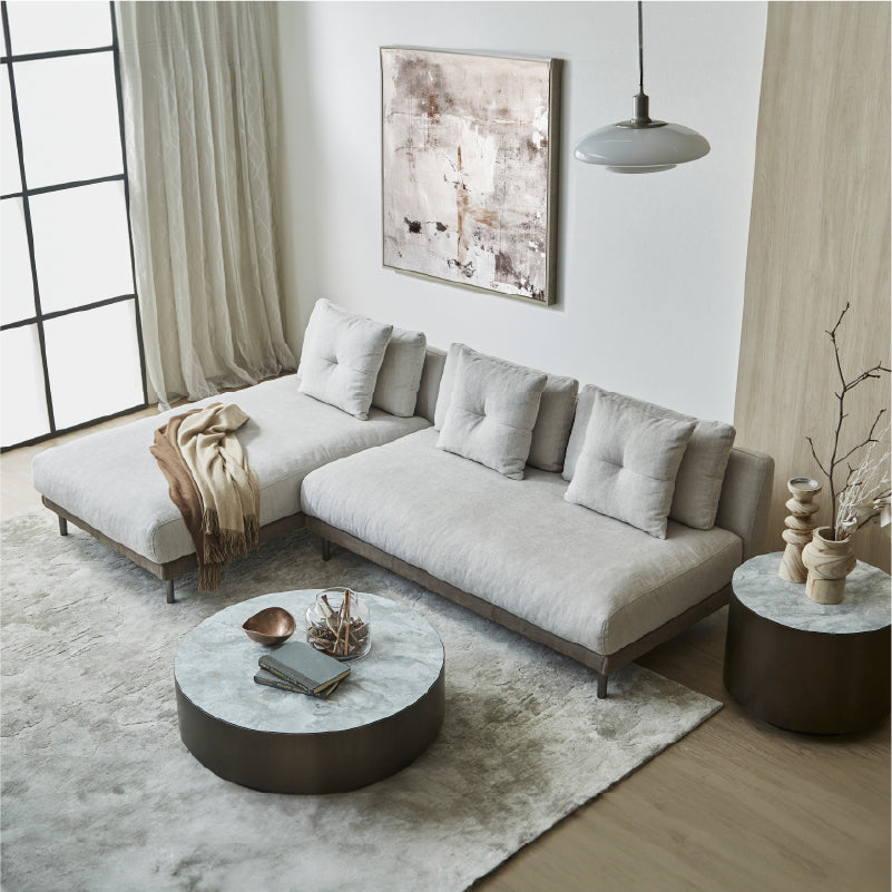 本体構造 座面内材:フェザー、ウレタンフォーム 座面下構造:Sバネ 背面内材:フェザー、シリコンフィル