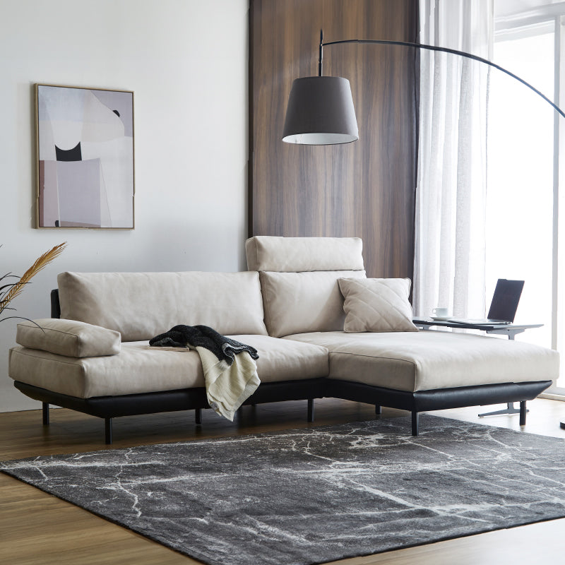 コスターナ カウチソファ 幅239cm PLT111 プラチナグレー×ET82 ロイヤルブラック(プライムレザーテックス) / 右カウチ 商品コード 396553