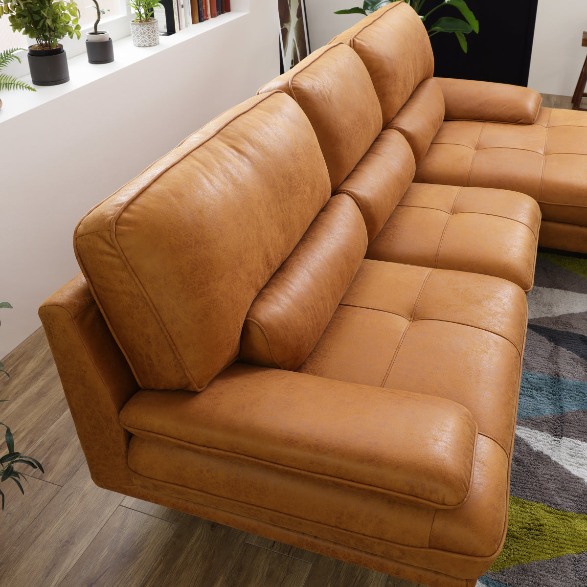 ソファの中央についている脚は、人が座った時に床に接地する構造で、 あくまで荷重がかかった時の補強用のものでございますので、浮いている状態が正常になります。
