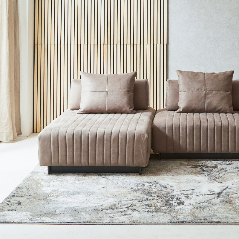 開梱時に稀に表面のシワ、変形等が見られる場合がありますが、輸送中におこったものなので、ご使用されるうちに自然に回復します。また、叩いたり張地を軽く引っ張ると回復も早くなります。