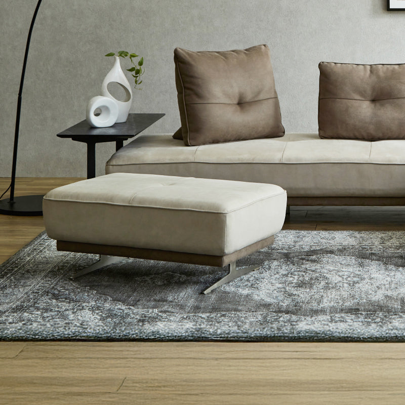 アルフレード オットマンスモール PLT111 プラチナグレー×PLT112 ヨーロピアングレー(プライムレザーテックス) 商品コード 443376