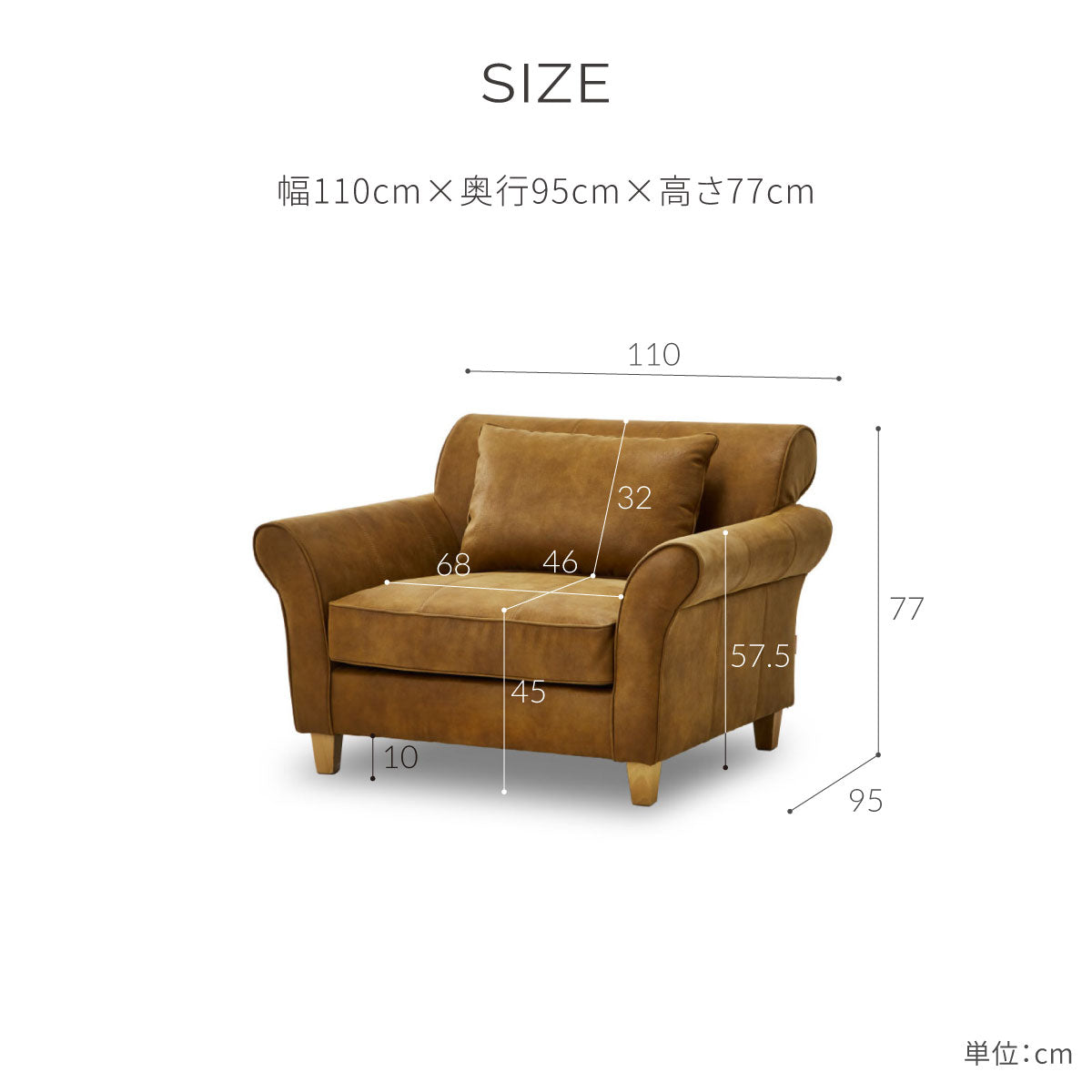 カザル 1人掛けソファ 幅110cm LT01 キャメル(レザーテックス アニリン) 商品コード 285448
