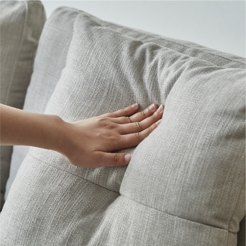 程よい反発性とふわっとした感触の背クッションが優しく包み込むような柔らかな印象を与えます。