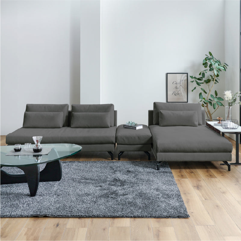 2人掛けソファ+オットマン+シェーズの組み合わせ PLT113モードグレー