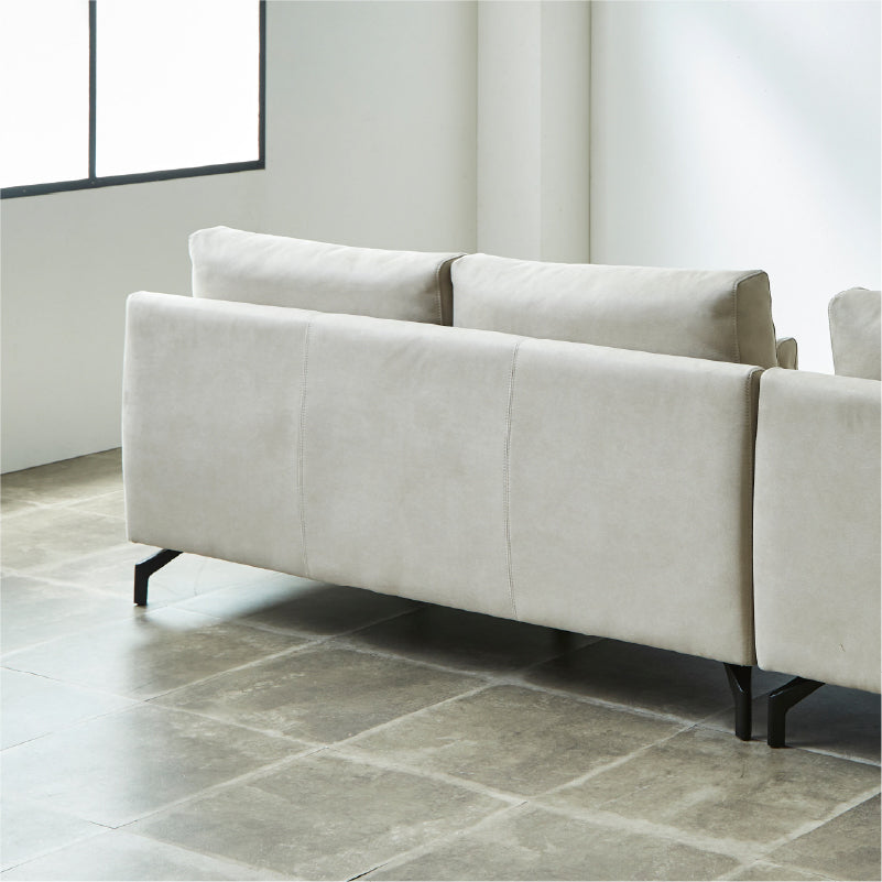 背もたれにはスモールフェザー、座面には高密度ウレタンフォームを使用。