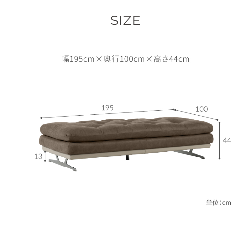 商品サイズ 幅195.0 × 奥行100.0 × 高さ44.0cm