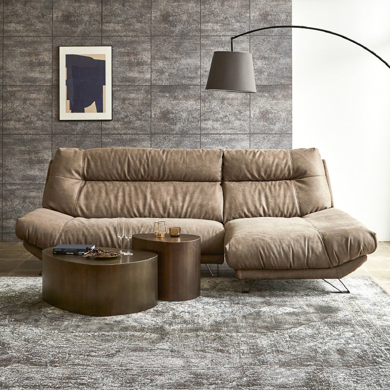 ソファの中央についている脚は、人が座った時に床に接地する構造で、 あくまで荷重がかかった時の補強用のものでございますので、浮いている状態が正常になります。