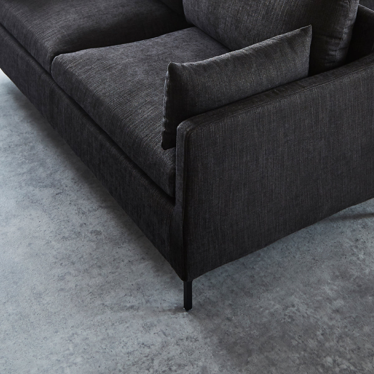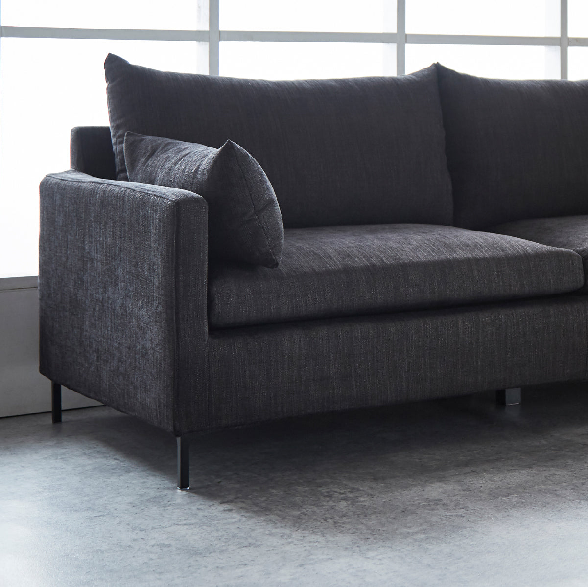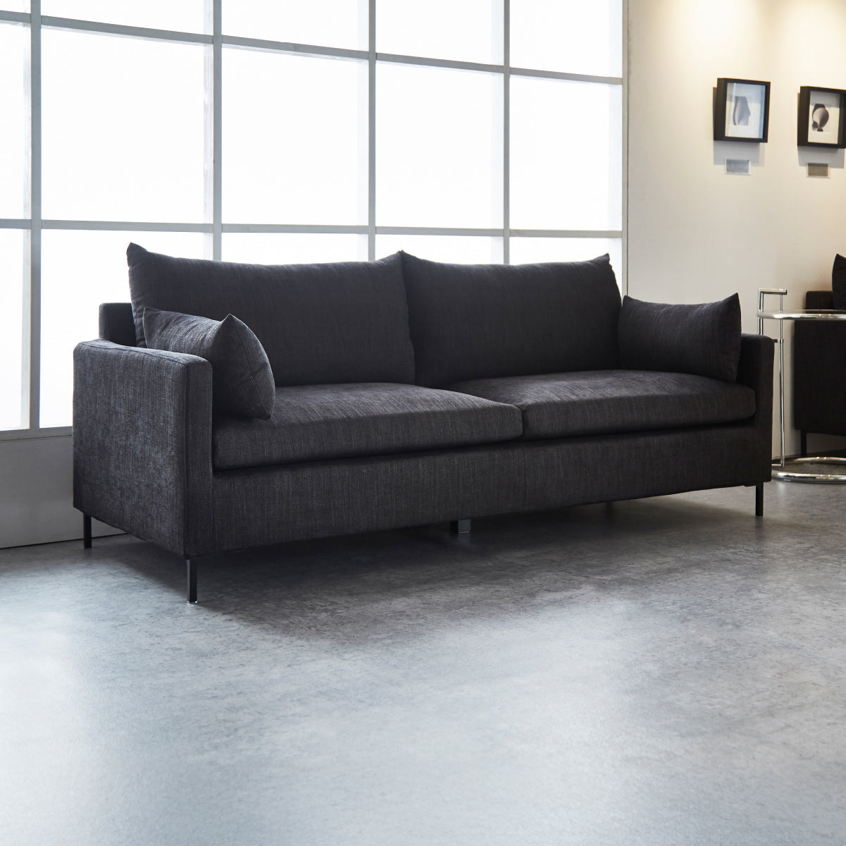 エッジを聞かせたクッションとシャープな脚がアーバンモダンな雰囲気を醸し出します。