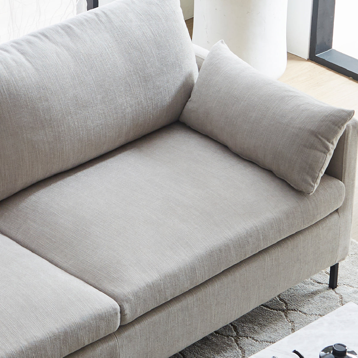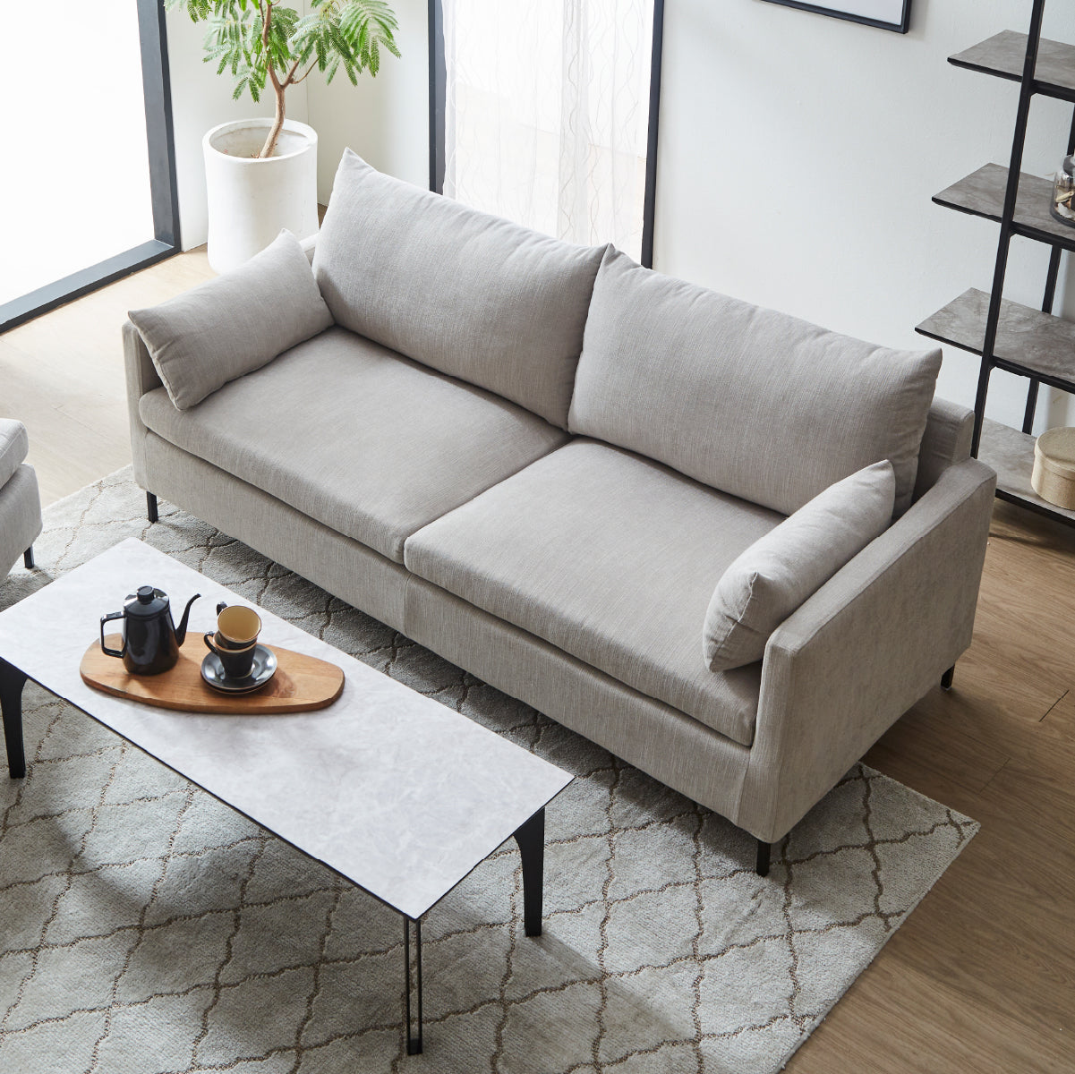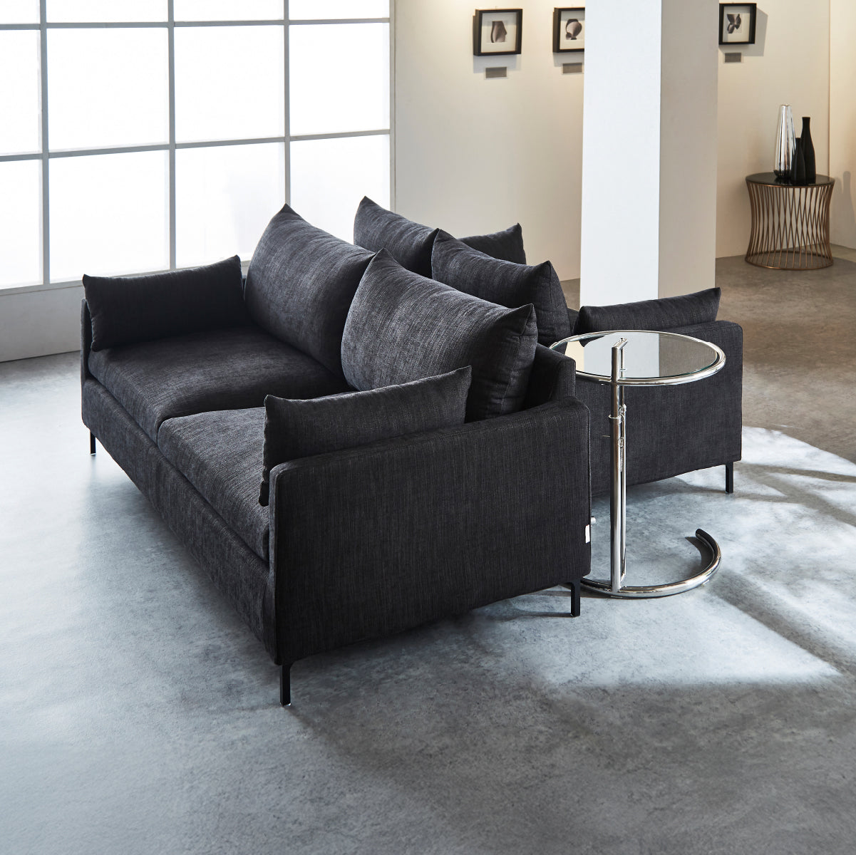エッジを聞かせたクッションとシャープな脚がアーバンモダンな雰囲気を醸し出します。