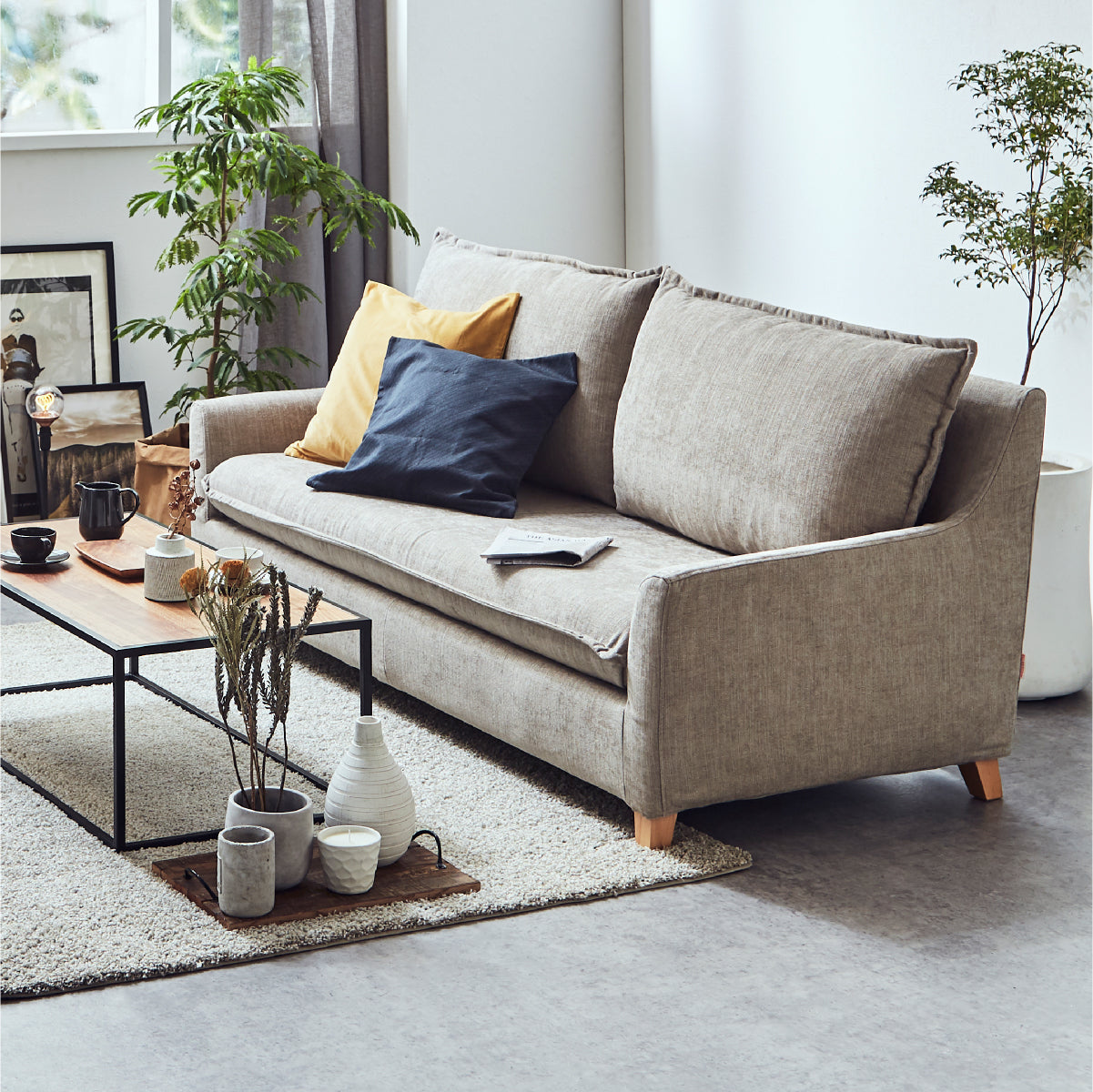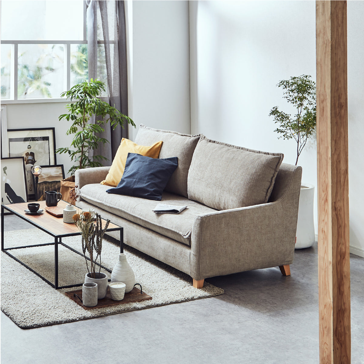 商品情報 クールでモダンなスタイルからリゾートスタイルまで幅広くマッチします。座面はふんわりやわらかめに仕上げているので、ソファにしっかりと身体を預けることができます。カウチタイプはお部屋のレイアウトに合わせて左右の組み換えができます。カバーはフルカバーリング仕様で、季節やインテリアに合わせてお好みの生地に張り替えが出来、さらにご自宅でお洗濯が可能です。※Fカテゴリー生地のみご家庭でのお洗濯ができません。