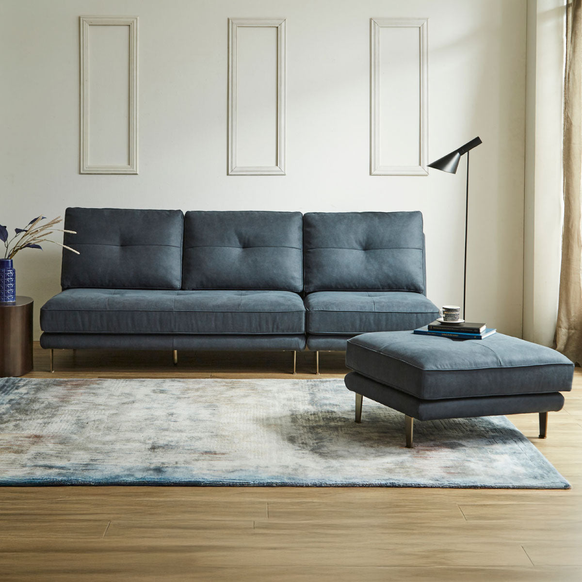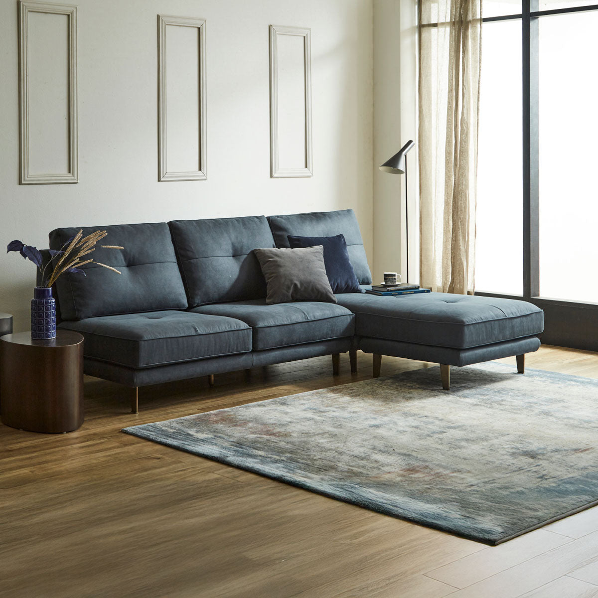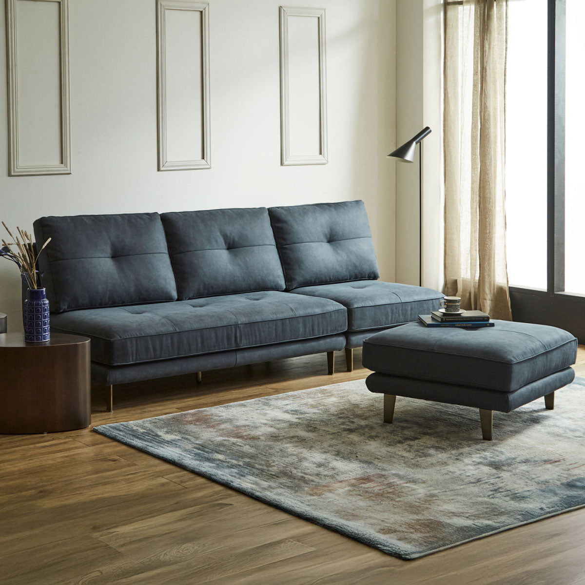ライフシーンに合わせて、限られた空間でも心地よく自由に使える、肘無し組み換えカウチソファ。