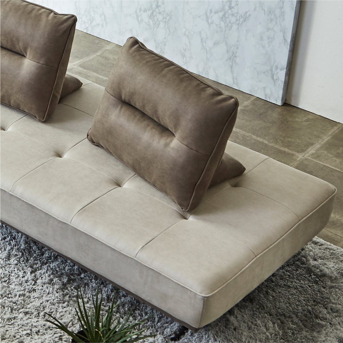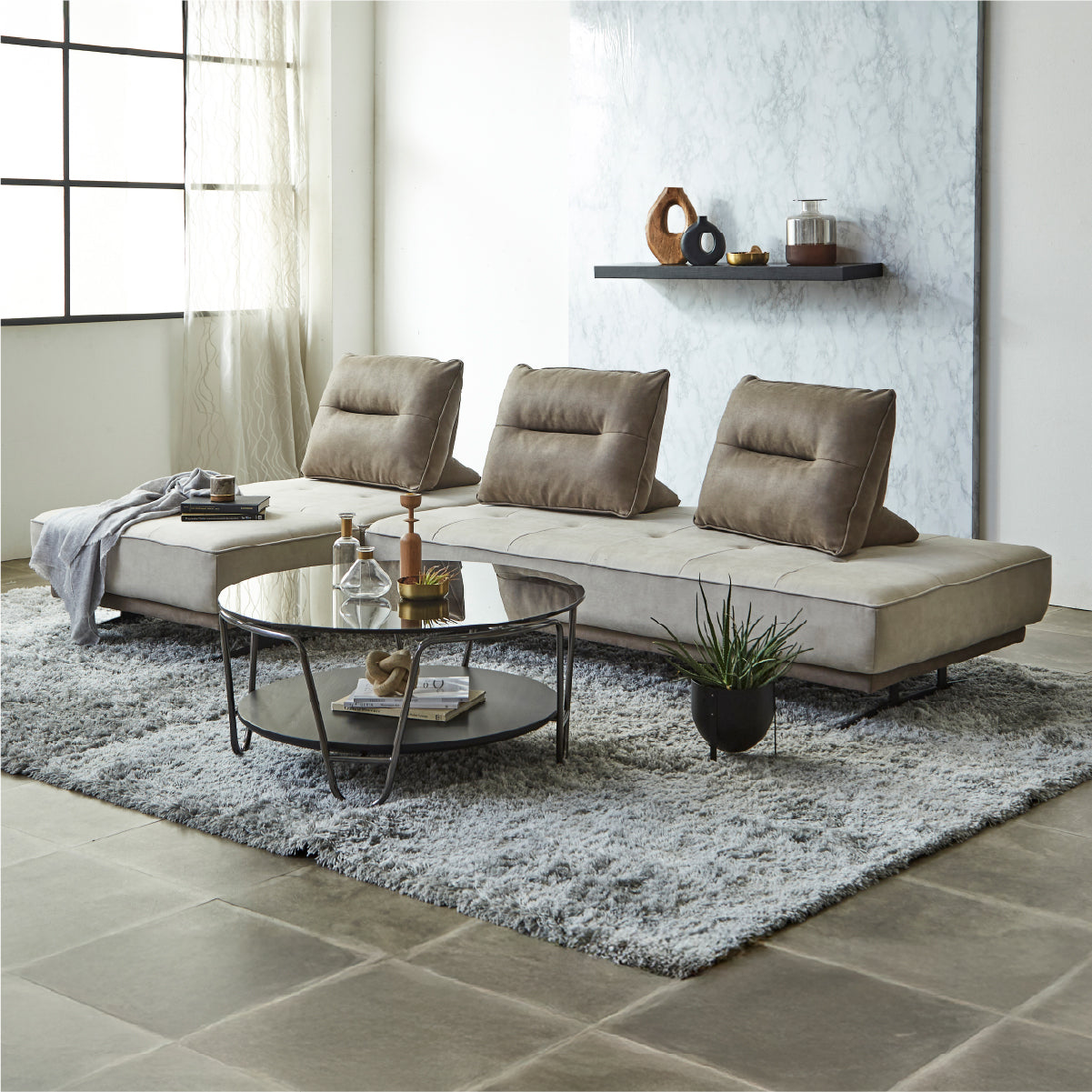 エレガントなフォルムと多様なライフスタイルにマッチするアイランドソファ「アベンタ」。