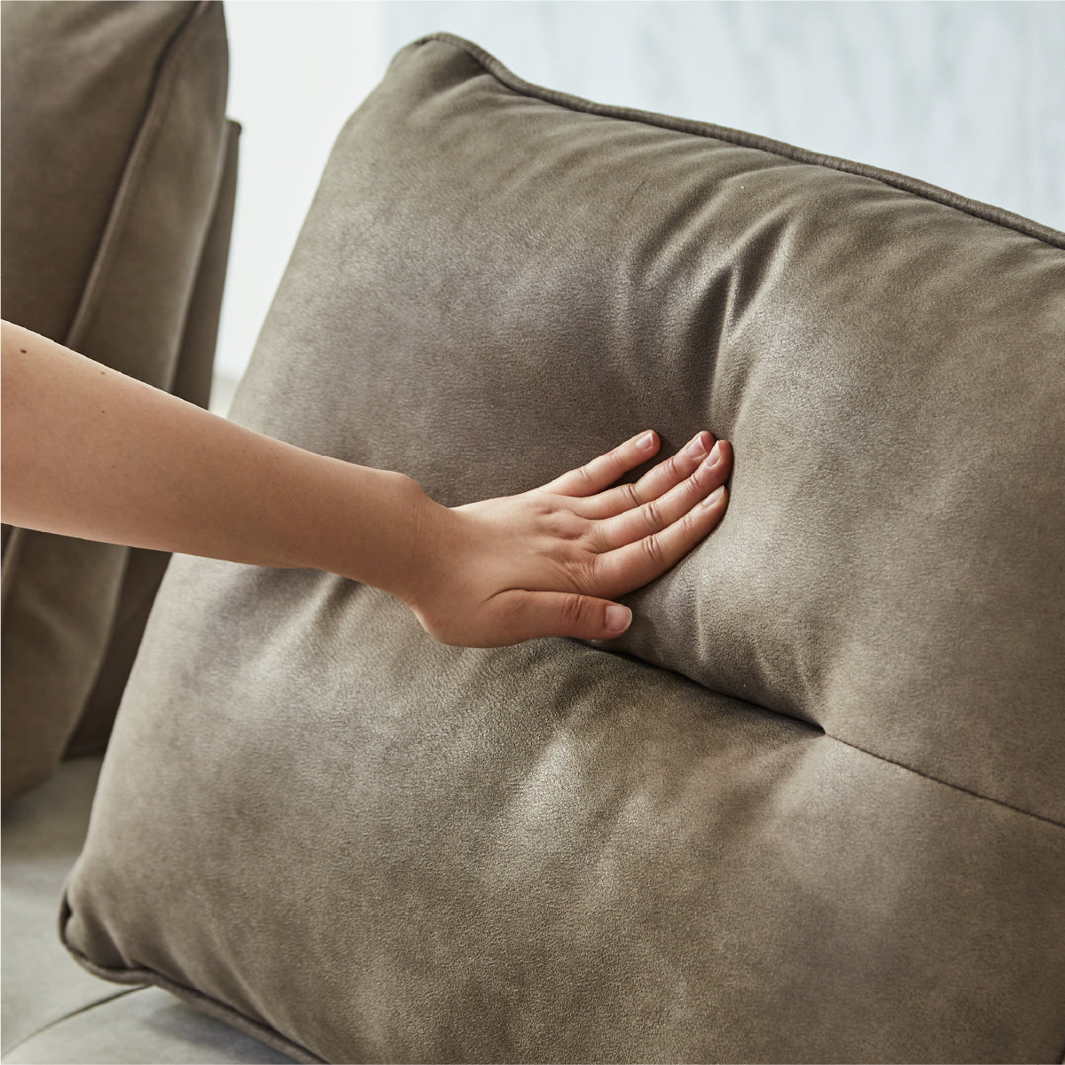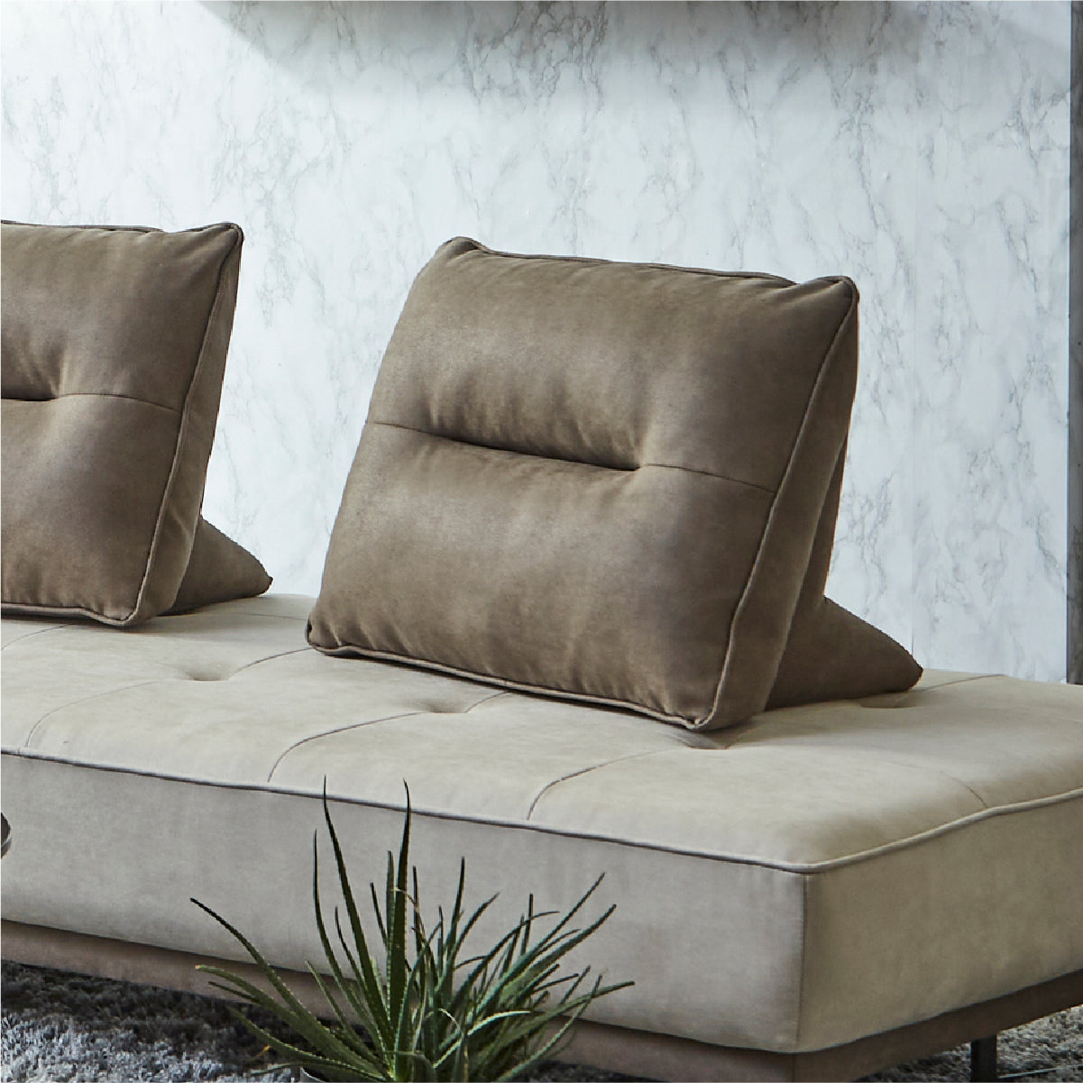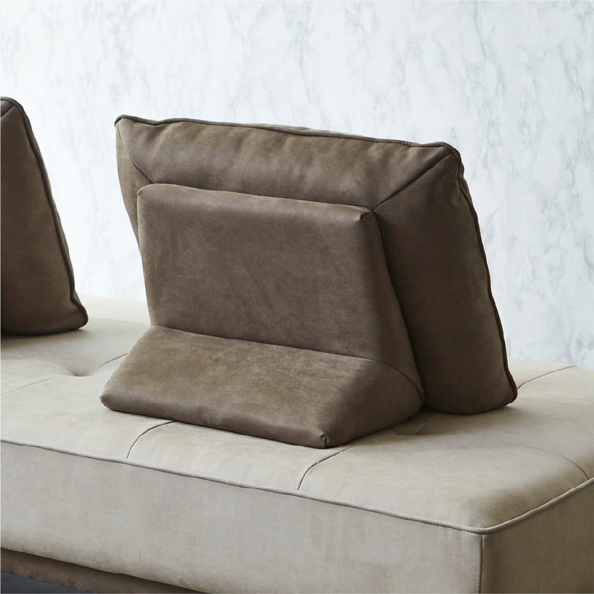 背クッションは置き型式なので、自由に配置してくつろぐことができます。 ※ソファは別売り