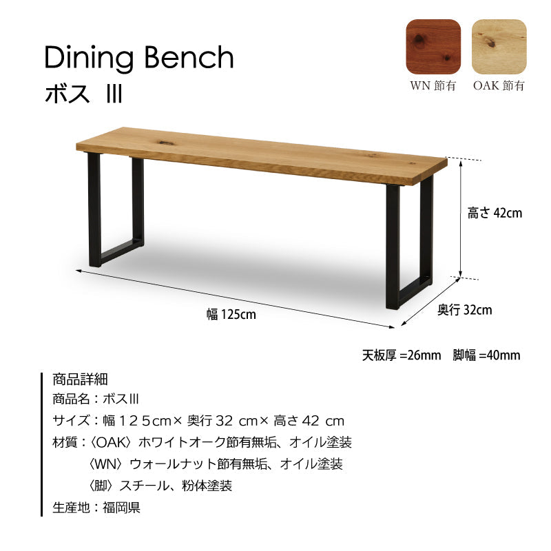 ボスⅢ ベンチ 幅125cm ウォールナット 商品コード 418383