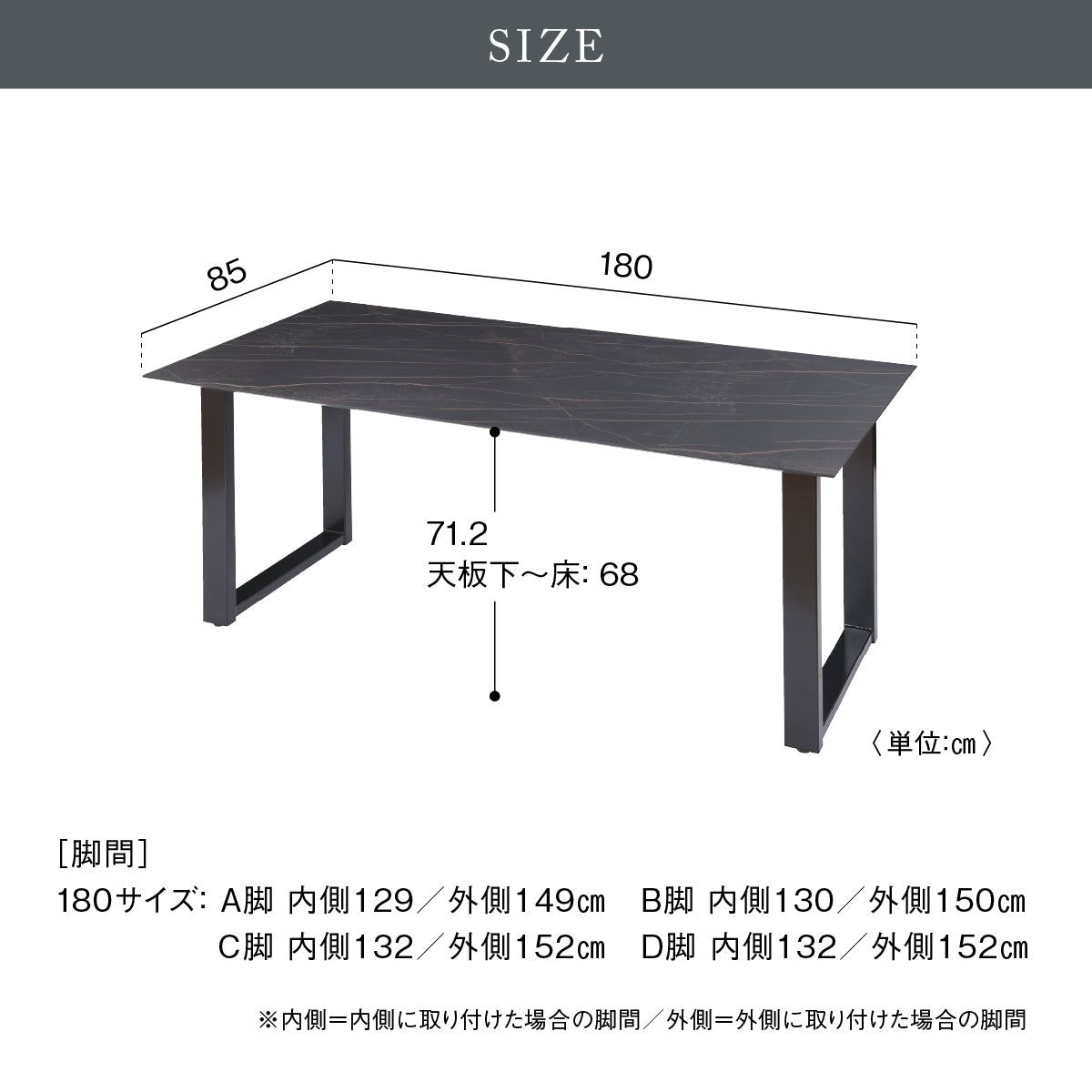 商品サイズ 幅180.0 × 奥行85.0 × 高さ71.2cm