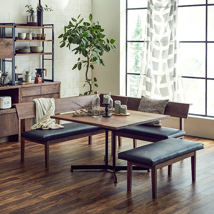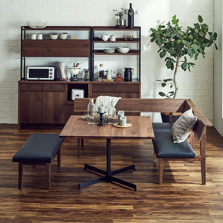 レイキⅡ リビングダイニングベンチ 肘あり ウォールナット×ブラック / 右肘 商品コード 376264