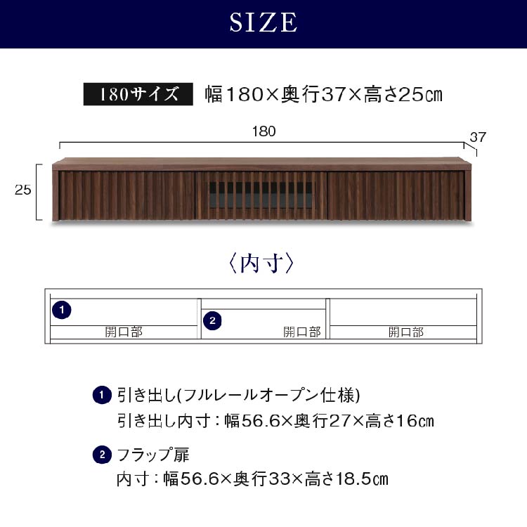 商品サイズ 幅180.0 × 奥行37.0 × 高さ25.0cm