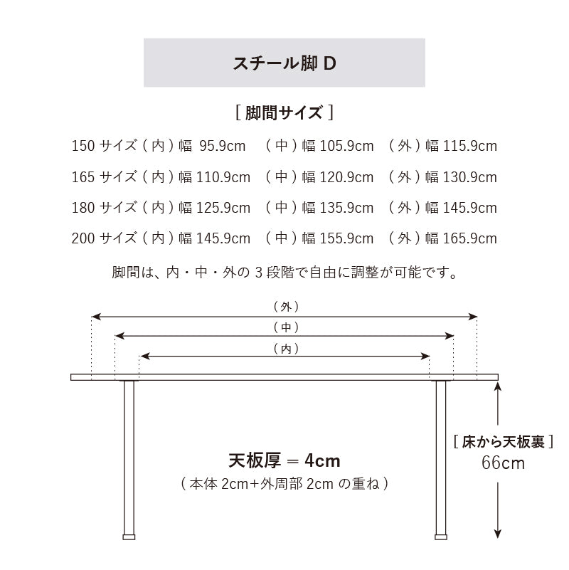 レスター ダイニングテーブル 幅165cm オーク / スチールD脚 / オイル塗装 商品コード 418499