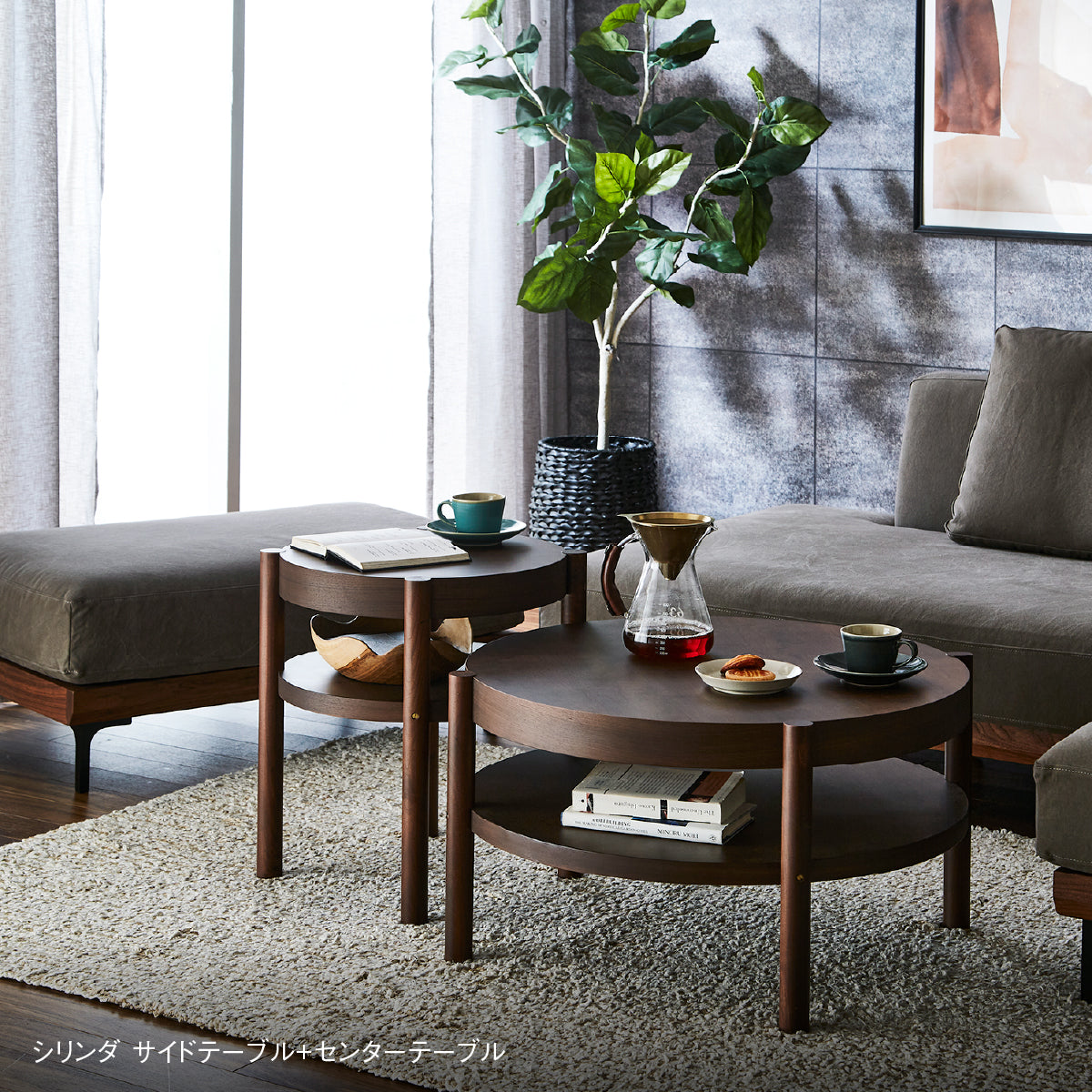 シリンダ サイドテーブル 幅49cm 棚付 ウォールナット 商品コード 370988