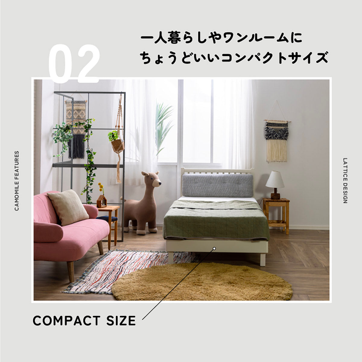 商品情報 ヘッドがスポークになっているのですっきりとした見た目に。一人暮らしや一人部屋に丁度いい小さめサイズでおすすめのスノコ仕様のベッドフレームです。色は落ち着きのあるカフェ(ブラウン)色と清潔感のあるホワイト色の2色展開です。