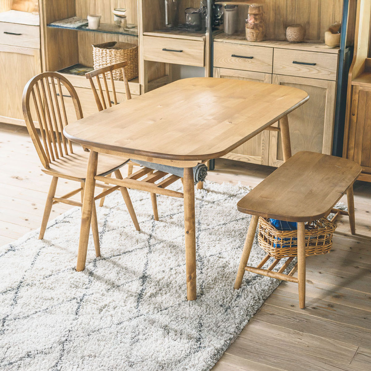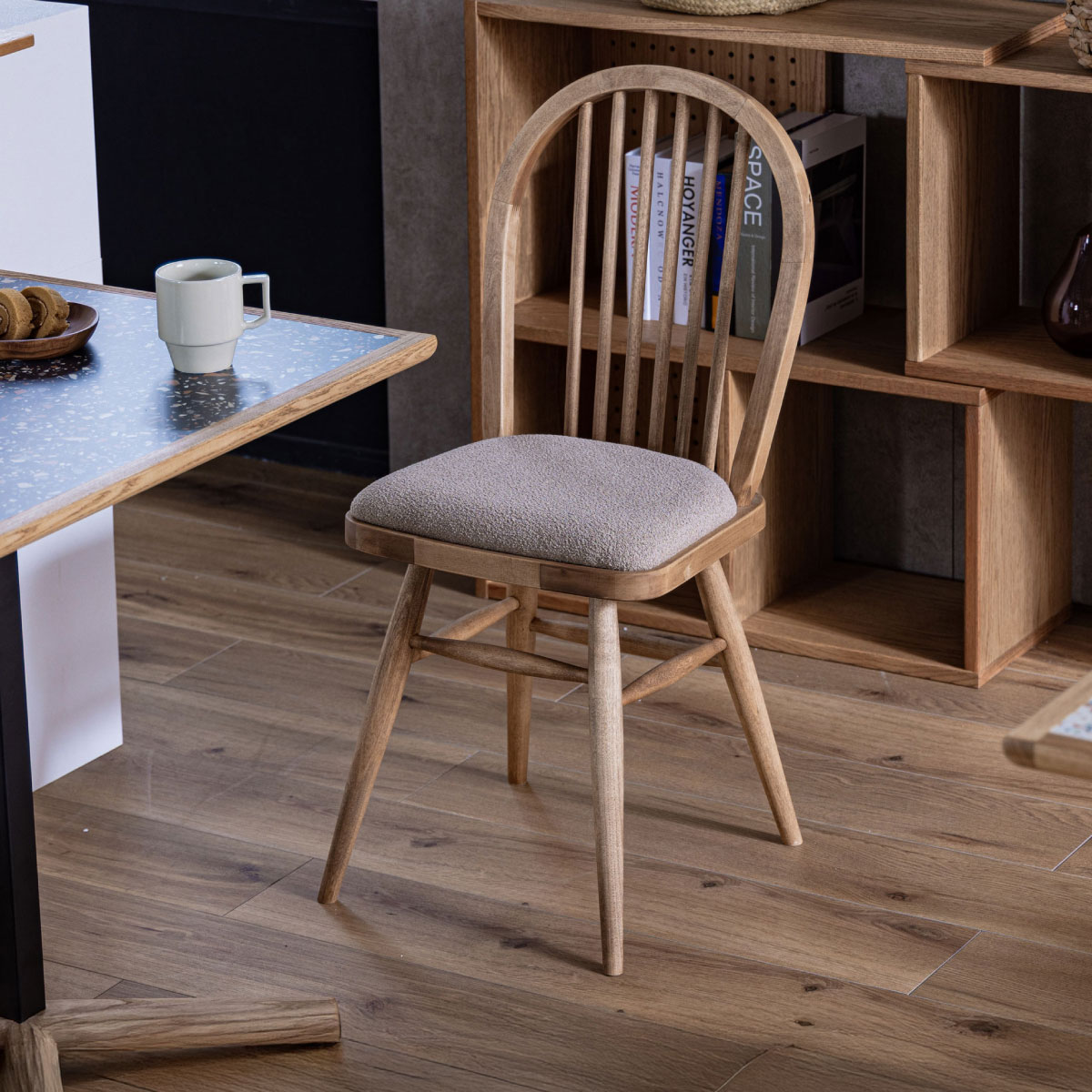丸みを帯びたナチュラルなデザインなので、異なるデザインのチェアとの組み合わせても馴染みます。