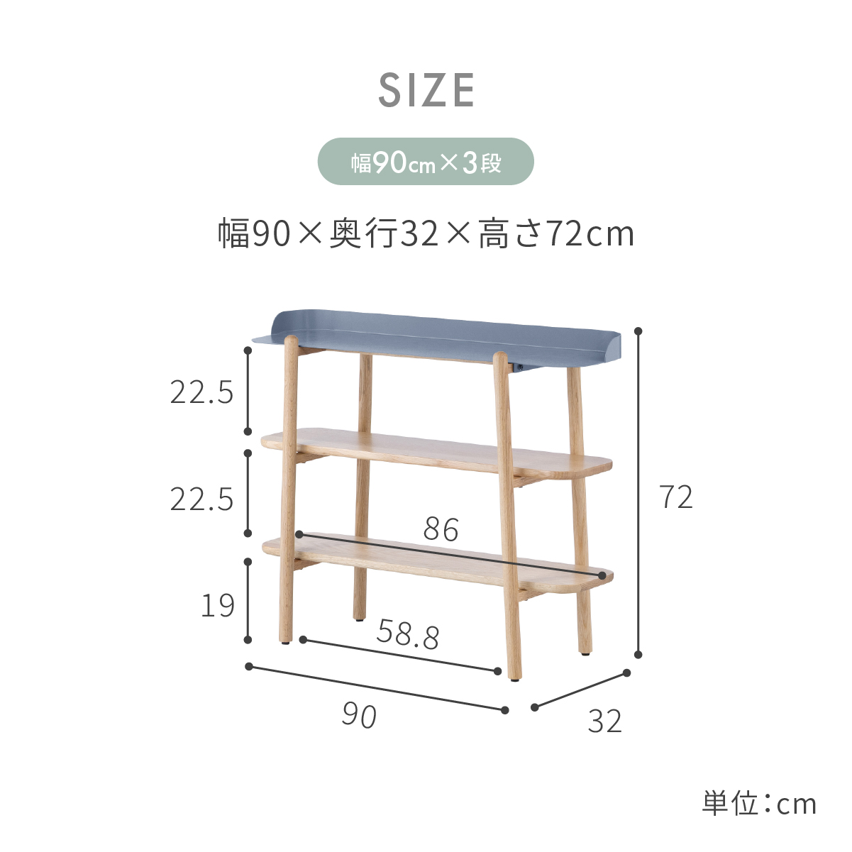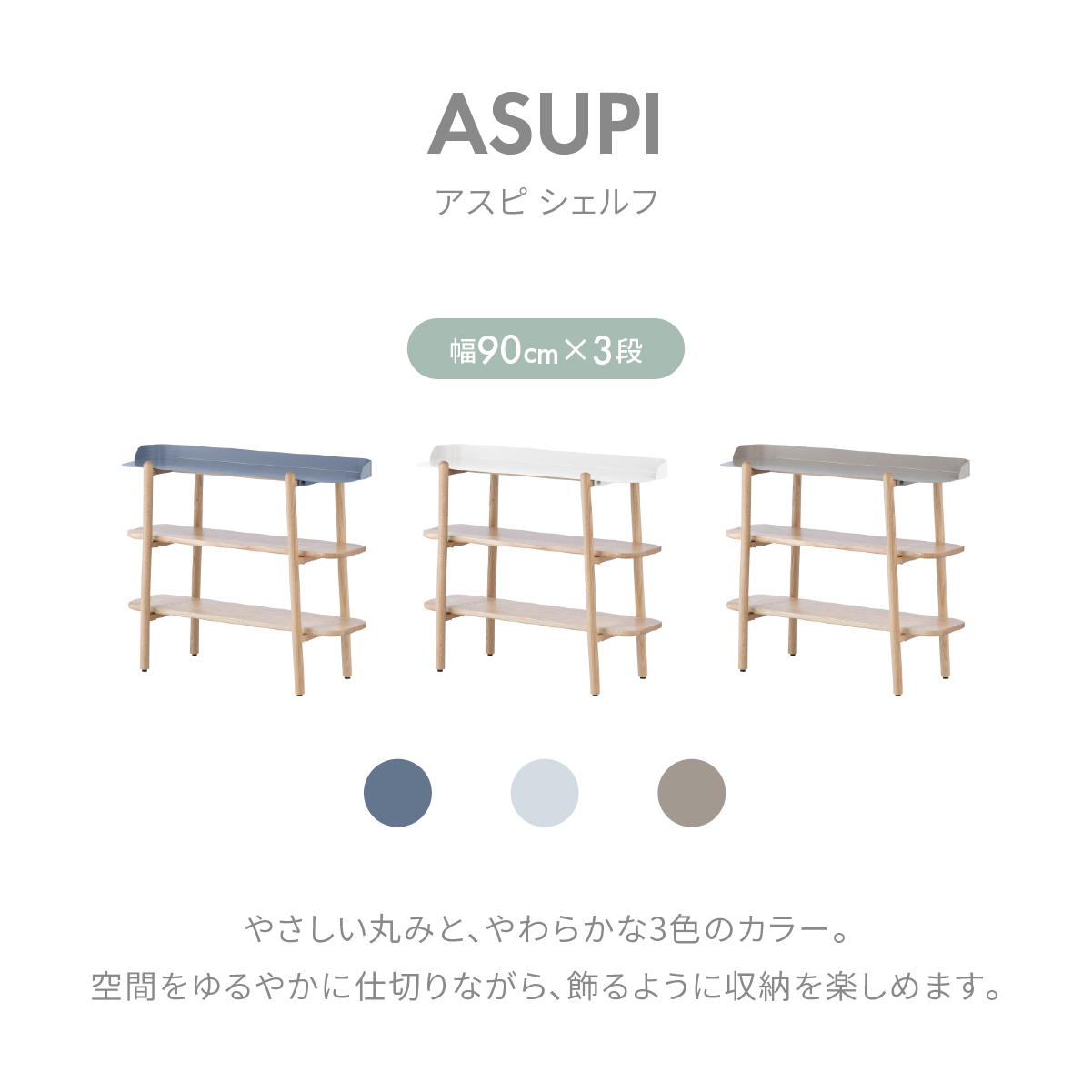 アスピ シェルフ グレー / 幅90cm×3段 商品コード 483047