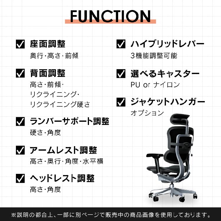 エルゴヒューマン プロⅡ ハイタイプ 新基盤 ブラック×ブラック / ウレタンキャスター 商品コード 445406