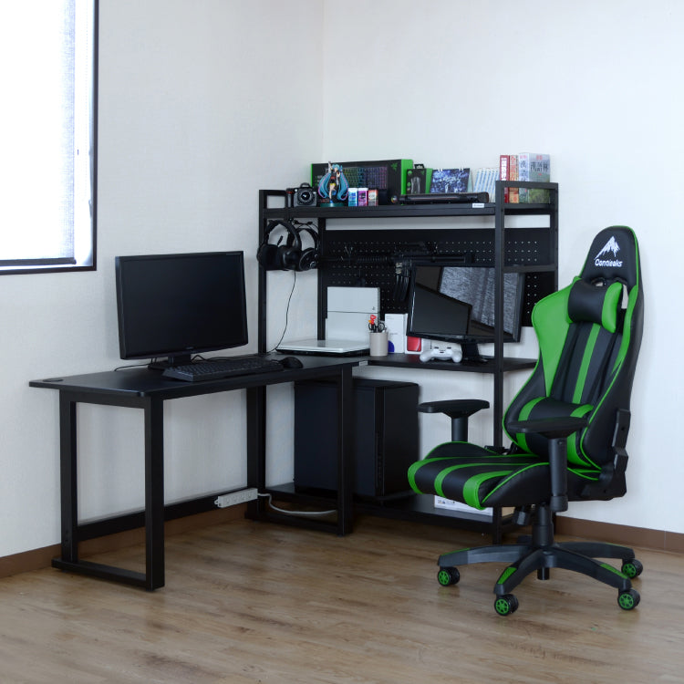 商品情報 棚板を組み替えて、用途に合わせてラック・デスク・TVボードになるゲーミングラック。 棚板は、18段階75mmピッチで高さ調節が可能。 天板棚板とパンチングスチール棚板の二種類があり。パンチングスチール棚板は、背板にすることで有孔ボードと同じようにフックなどで飾り収納にできます。