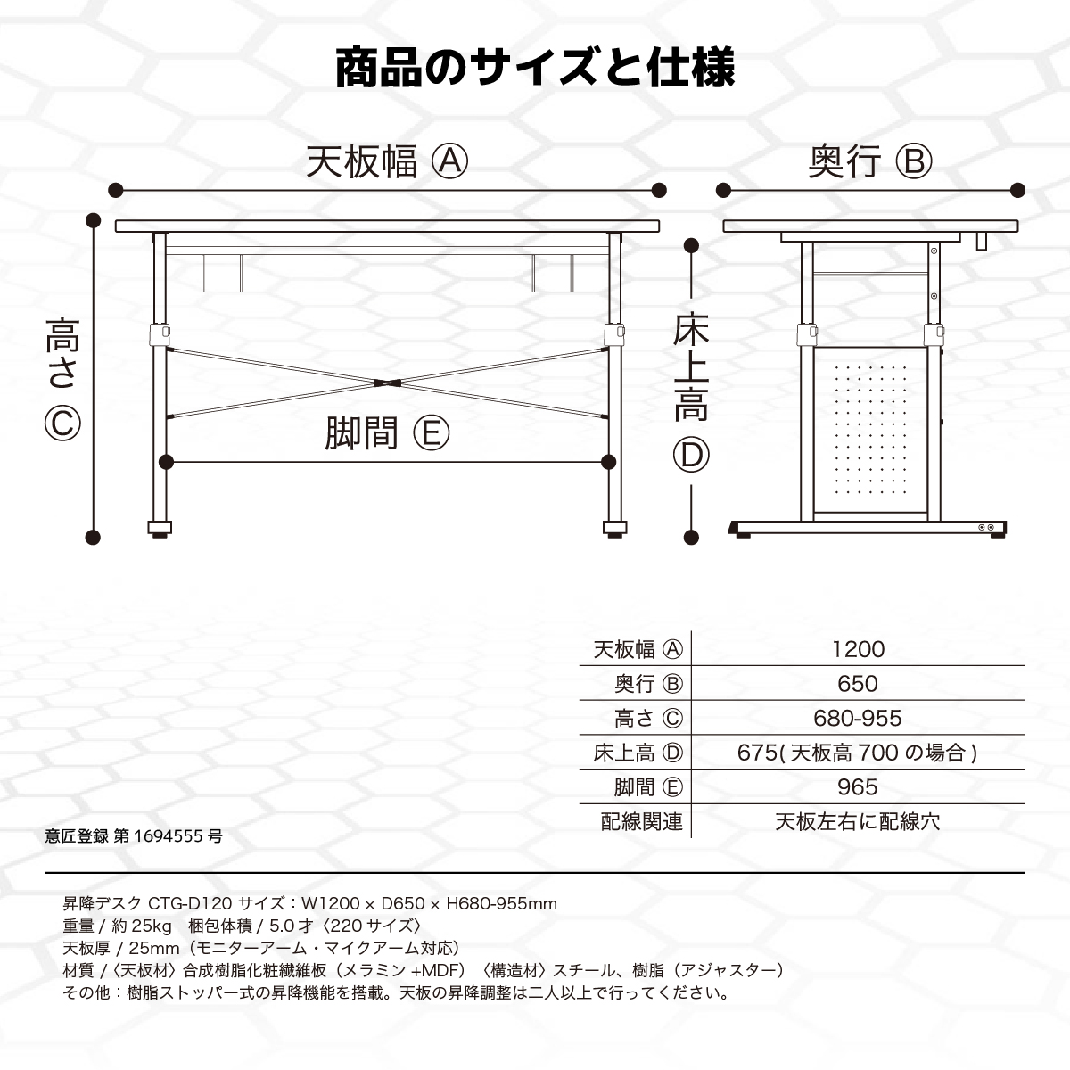 Contieaks CTG- 昇降式 ゲーミングデスク 幅120cm ブラック 商品コード 431828