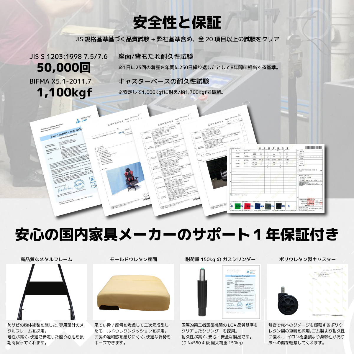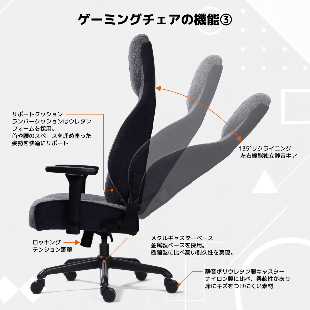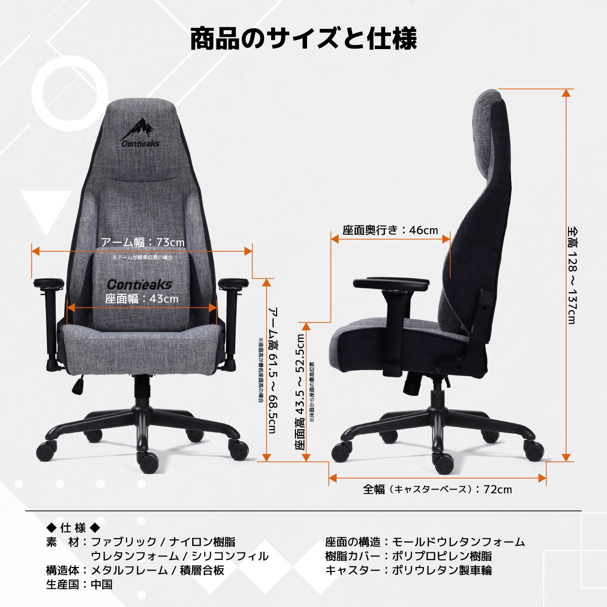 材質 ファブリック|スチール|モールドウレタン|樹脂|PU樹脂キャスター