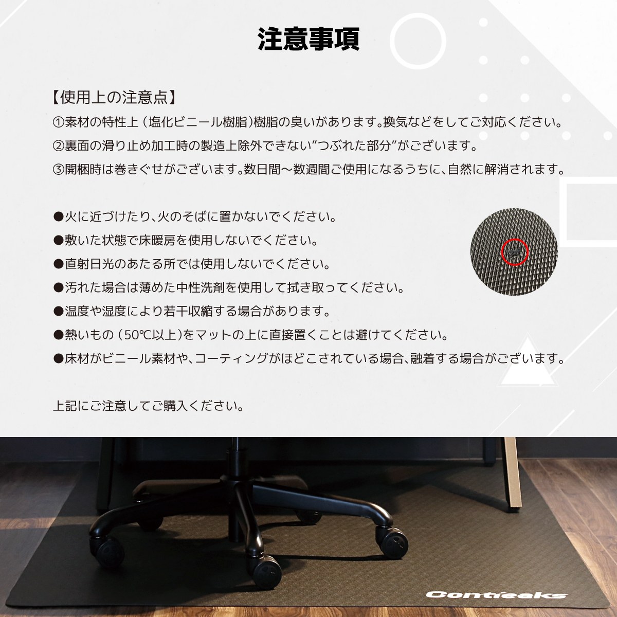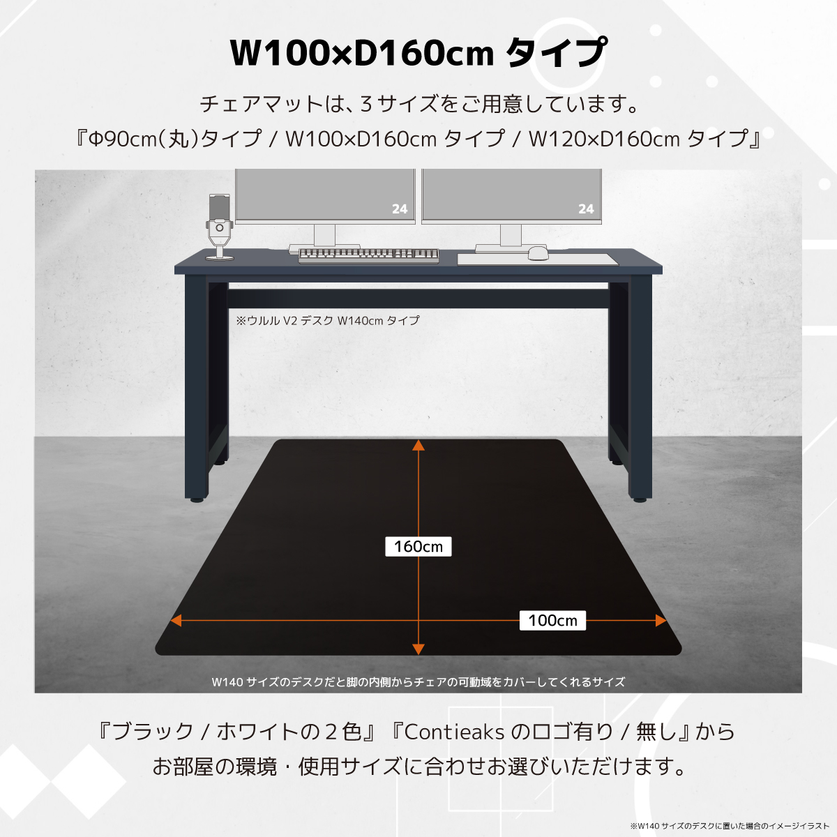 コンティークス チェアマット ロゴなし ブラック / 100×160cm 商品コード 432532