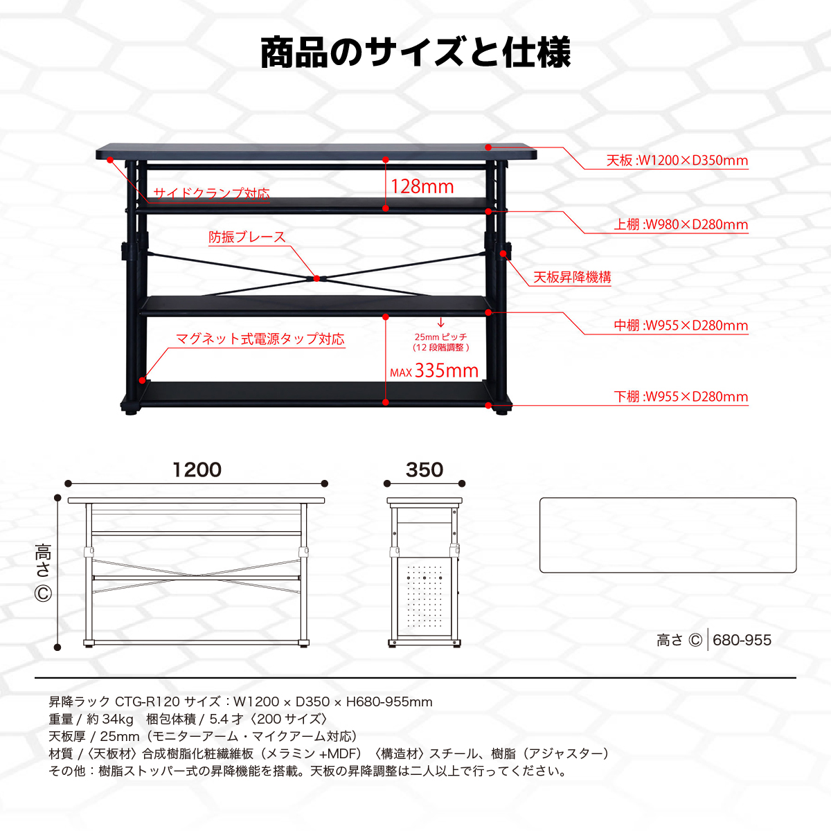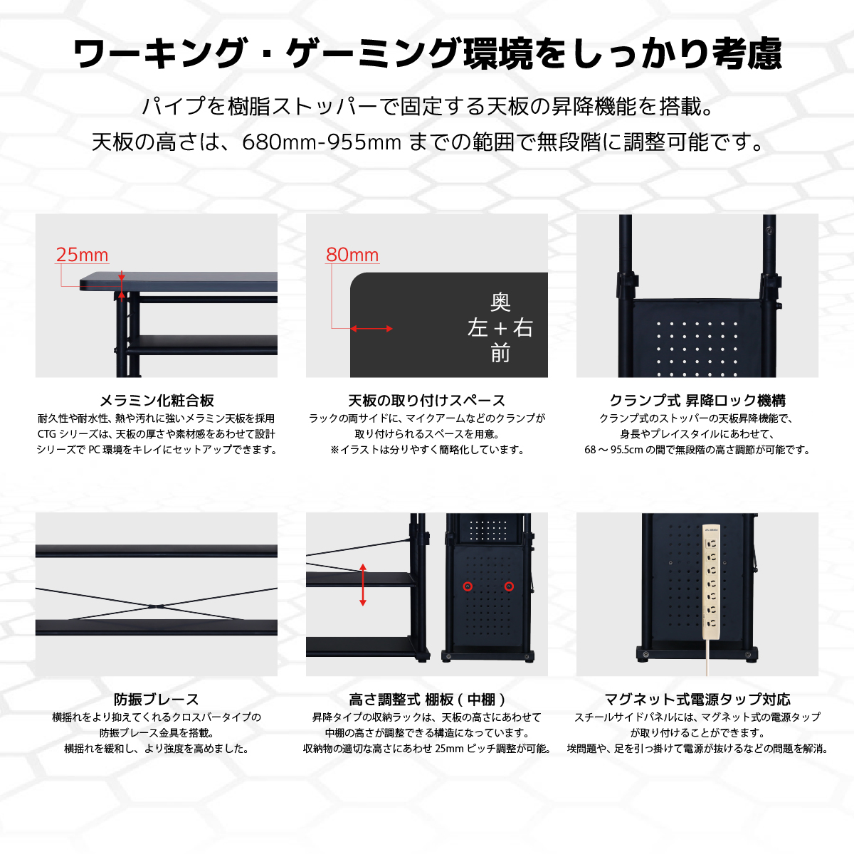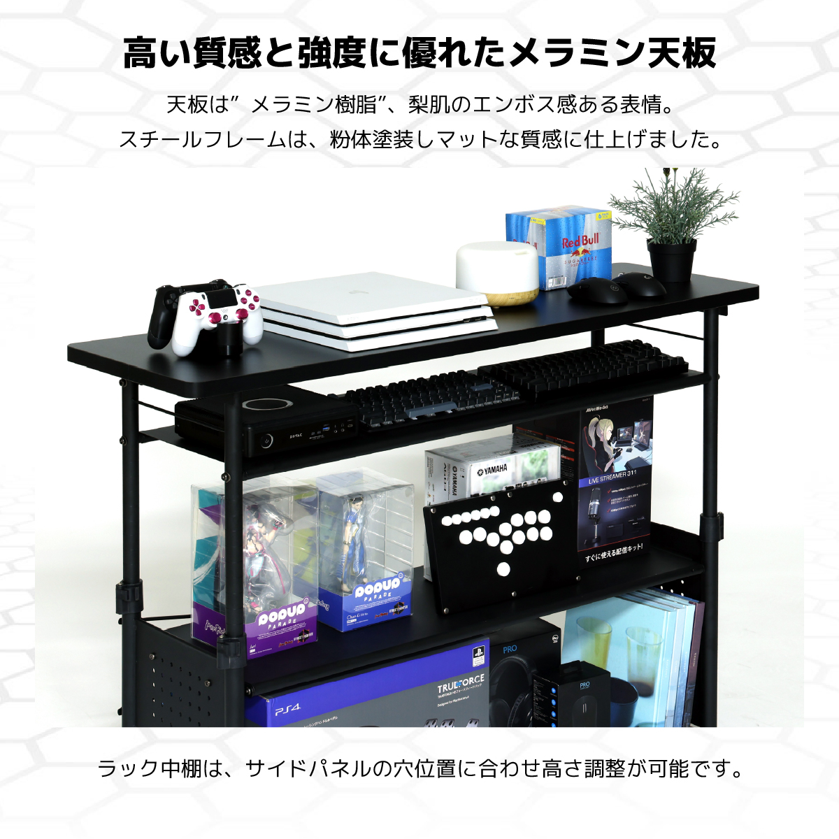 Contieaks CTG- 昇降式 ゲーミングラック 幅120 ブラック 商品コード 431829