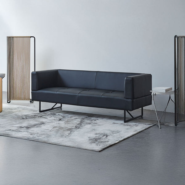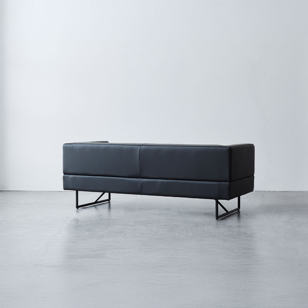 ソファの中央についている脚は、人が座った時に床に接地する構造で、 あくまで荷重がかかった時の補強用のものでございますので、浮いている状態が正常になります。