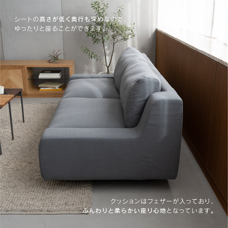 商品情報 ロータイプのシンプルなソファ。 トレンドに左右されず飽きのこないスタンダードなフォルムで、長くお使いいただけます。 フェザーの入ったクッションはふんわりと柔らかく、 シートの高さが低く奥行きも深めで、ゆったりと座ることができます。 幅広で低いアームは圧迫感がなく、横になった際もちょうど良い高さです。