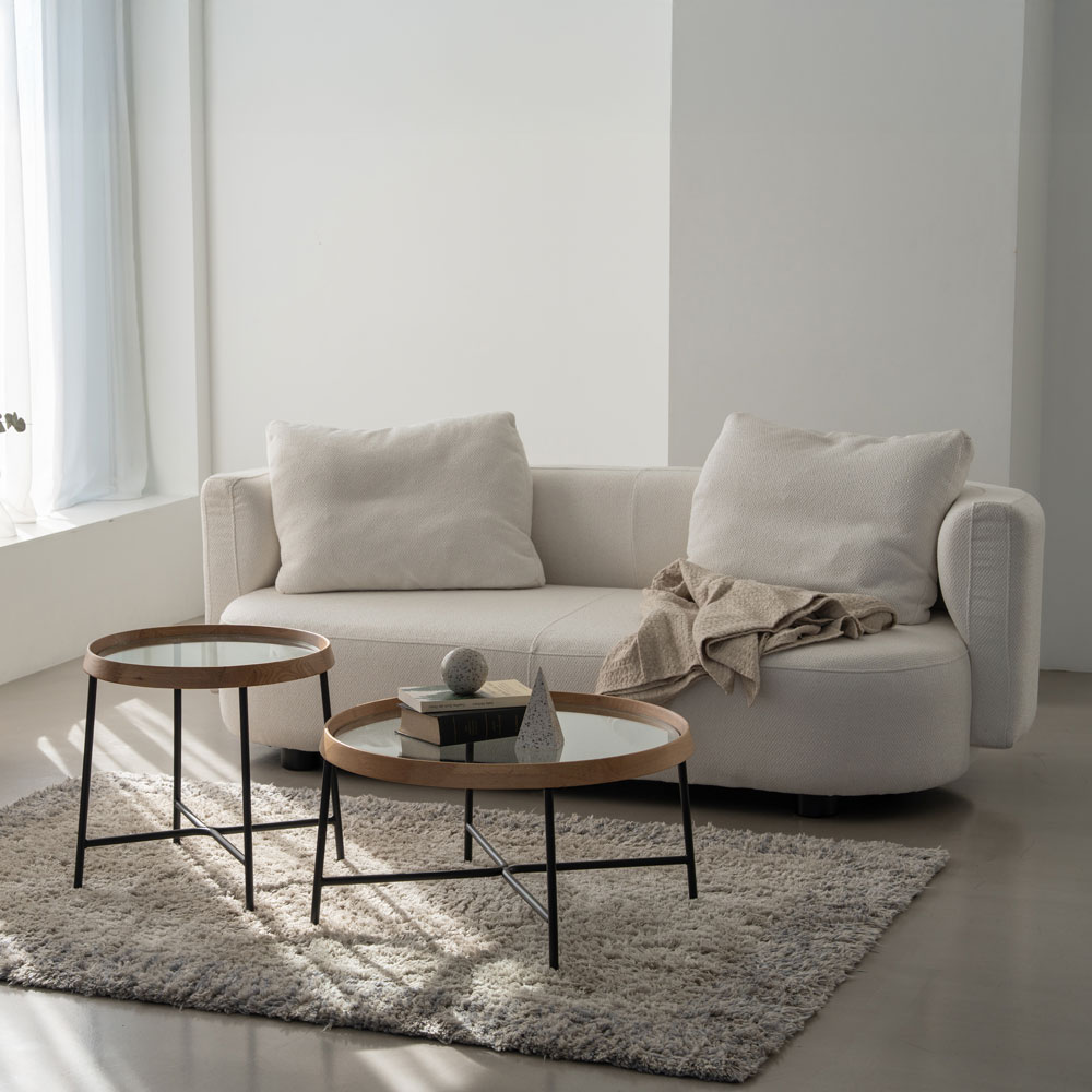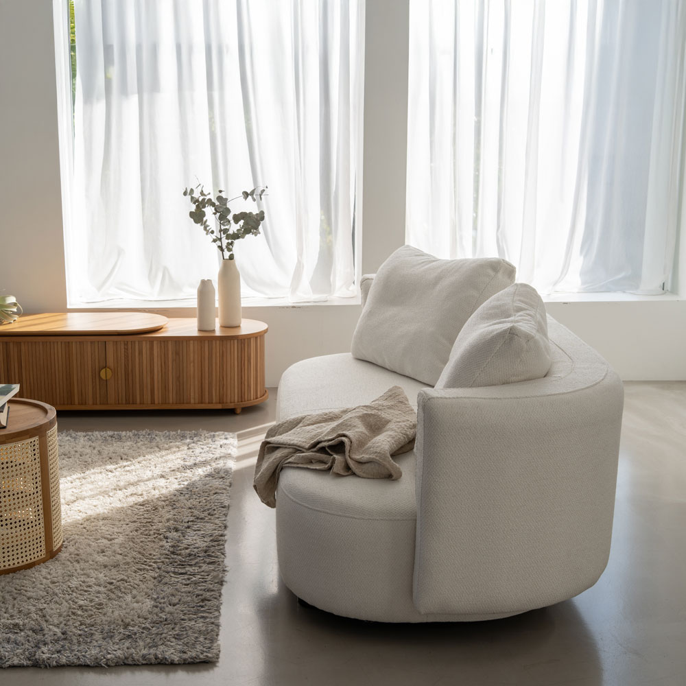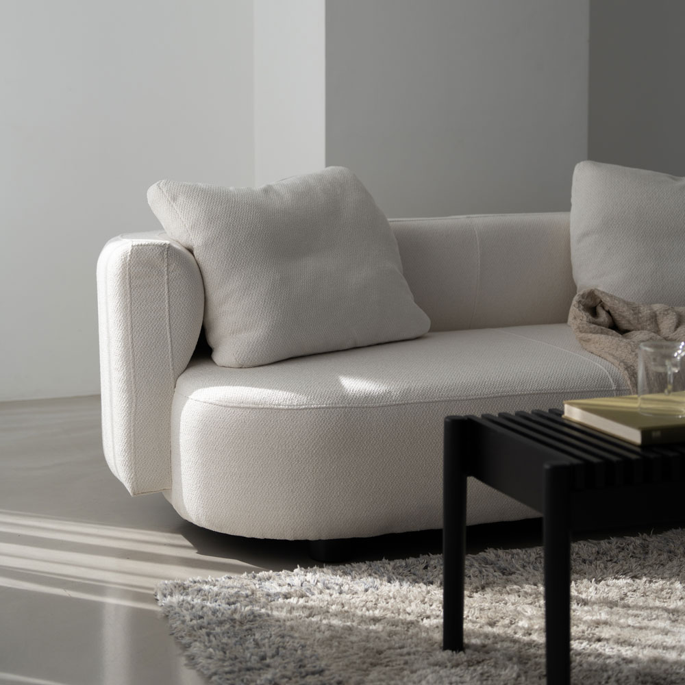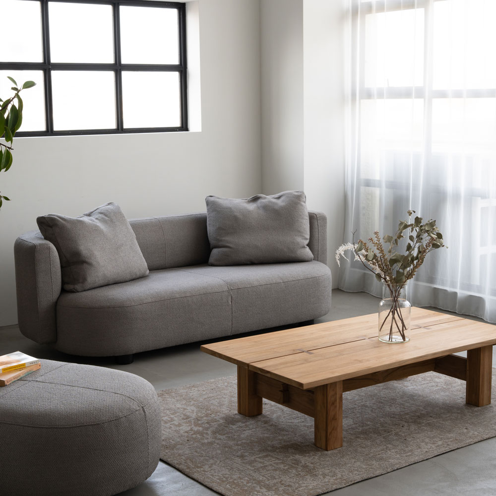 商品情報 ラウンドしたフォルムが特徴のハーフアームソファ。 ハーフアームのデザインにより圧迫感が少なく、程よい安心感を与えます。 大きめのフェザークッションはお好きな位置に配置でき、快適な座り心地をお楽しみいただけます。 丸みのある大きめのオットマンは、センターテーブルの代用やインテリアのアクセントとしておすすめです。