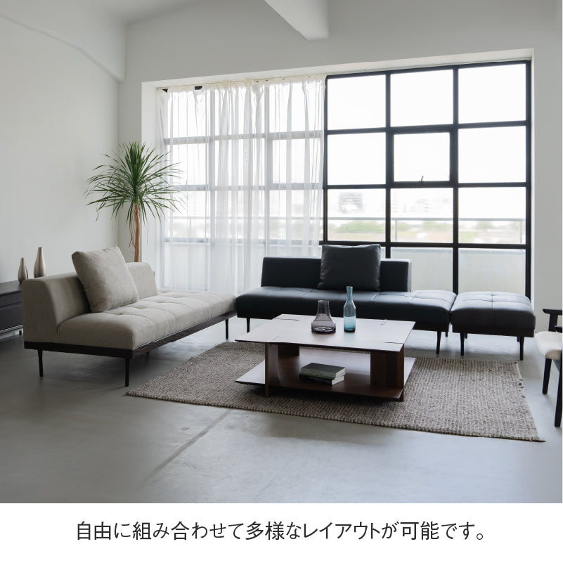 商品情報 アームレスでアシン メトリーなフォルムが、空間を広々と見せ、開放感を演出します。 ソファとオットマンを自由に組み合わせることで、多様なレイアウトが可能となり、 インテ リアの表情を変える楽しみも。 やや硬めなフラットシートで、デイベッドとしても快適にお使い頂けます。