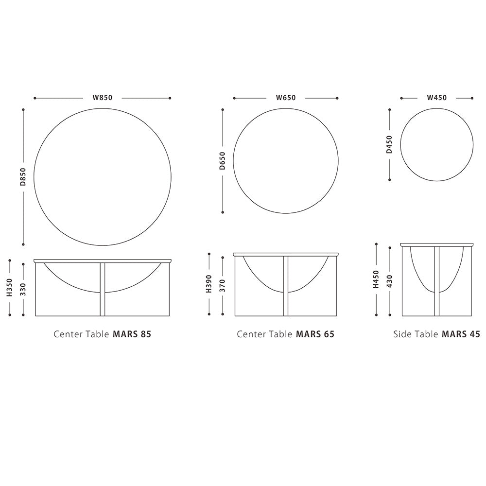 曲線と直線が美しく調和した、シンプルながら存在感のあるラウンドテーブル。