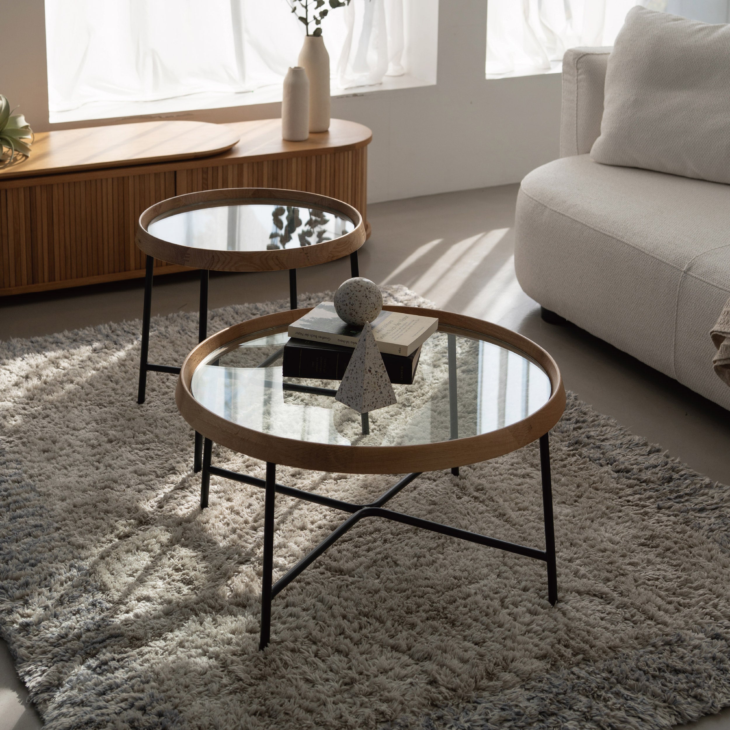 コンパクトなサイズ感で、2人掛けソファやカウチの前にも取り入れやすいデザインです。