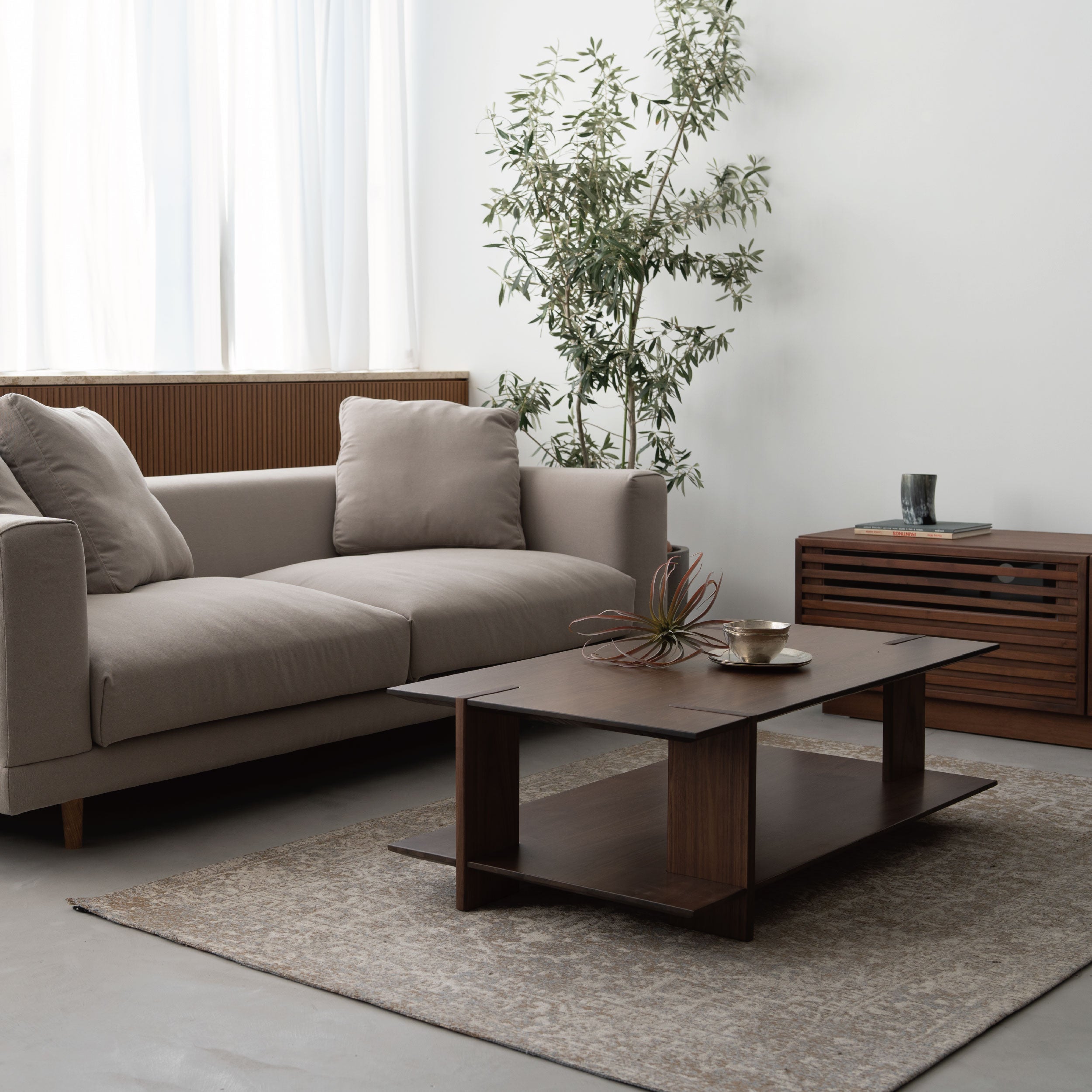 素材の持つ美しい杢目を生かすためにデザインはシンプルに。 このシンプルなデザインを実現するために、 ネジや金具が見えないよう構造にまで拘って設計されています。