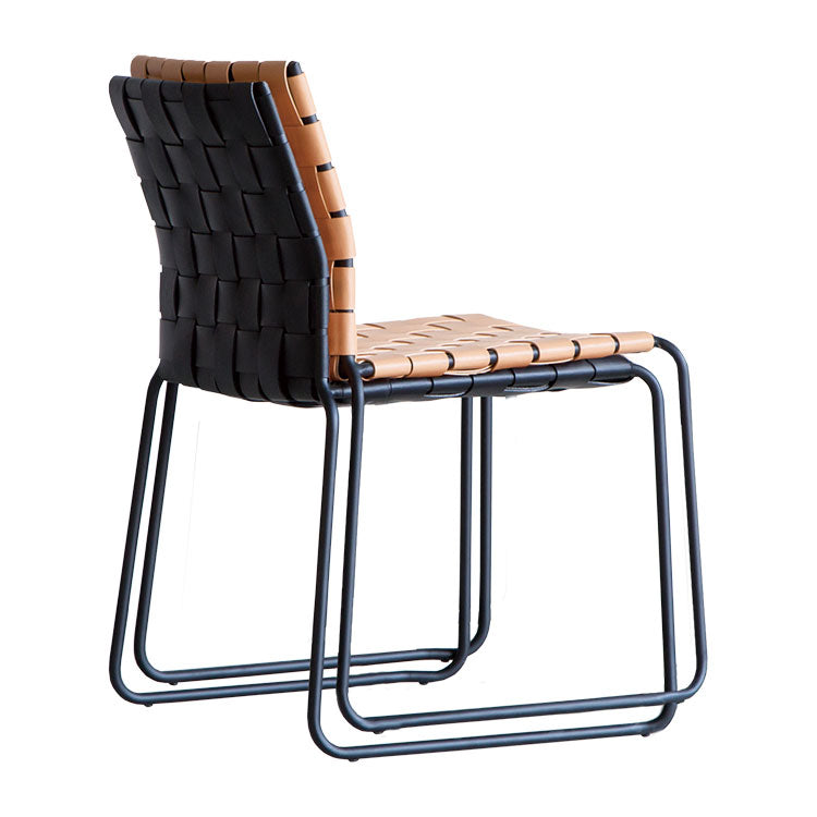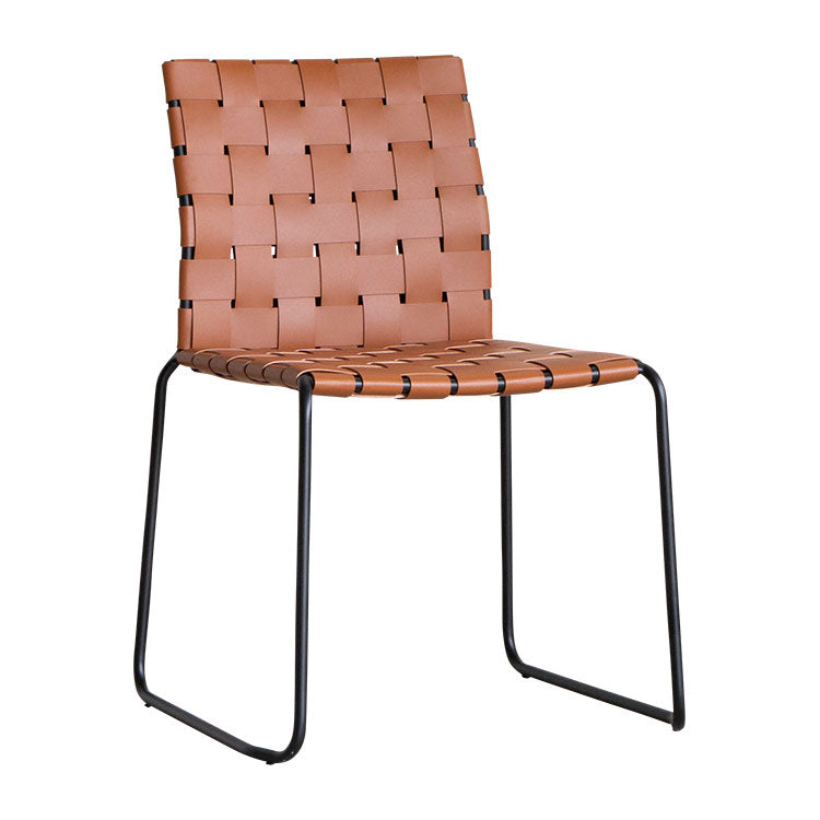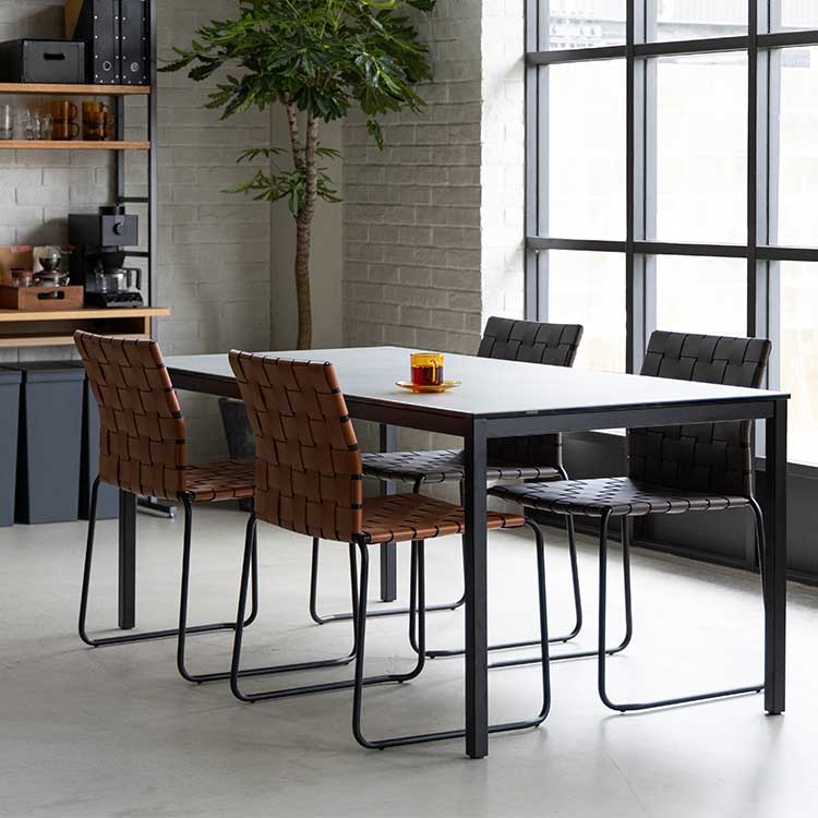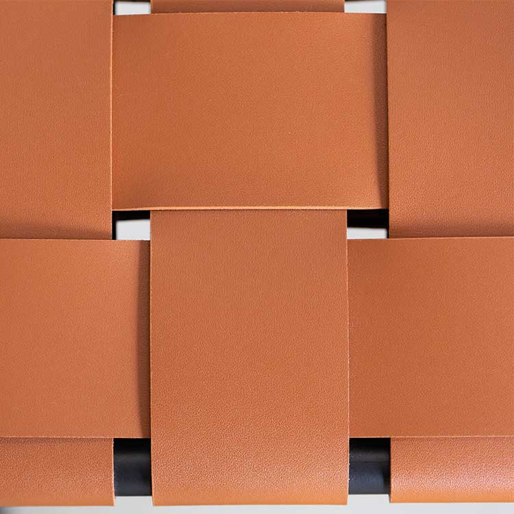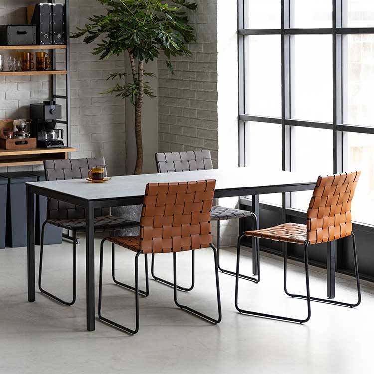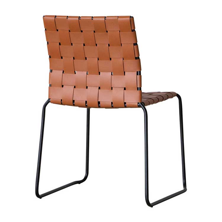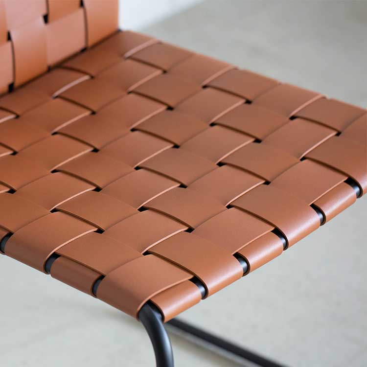 商品情報 レザーを編みこんだ座面とスチールフレームで構成されたモダンなチェアです。程良くしなるレザーの質感と座り心地がくせになります。ボンデッドレザーファイバーは、革の端材等をほぐして樹脂で固めて再生成した天然皮革の雰囲気が味わえつつも、素材も無駄にしないエコロジーな素材です。