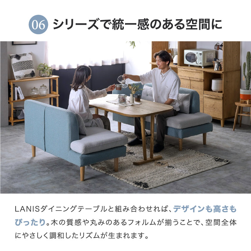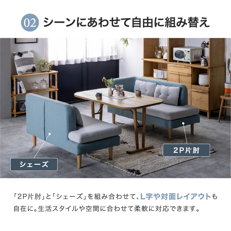 商品情報 場所を選ばず置ける、コンパクトサイズのリビングダイニングソファ。ダブルシェーズなので出入りがしやすい仕様に。またカバーリング仕様なので、汚れてもドライクリーニングできるのでカバーを清潔に保てます。4つのクッション付きでボリューム感もあるリビングダイニングソファです。