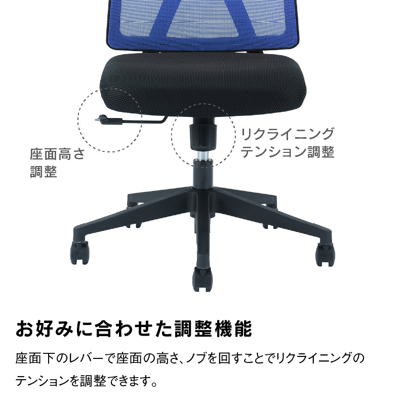 商品情報 座面昇降、シンクロリクライニング、リクライニングテンション調節
